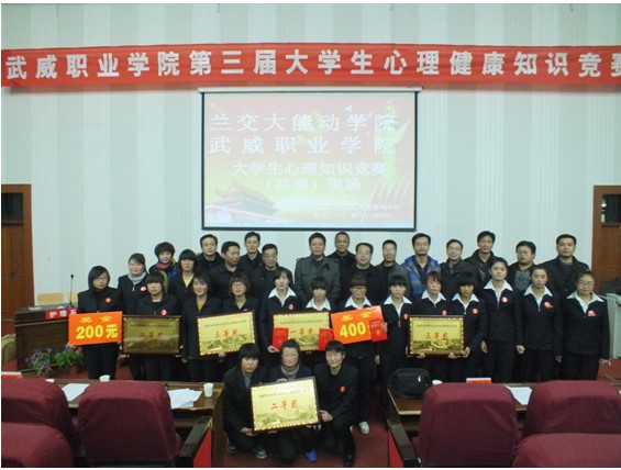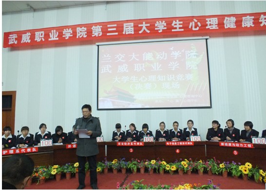 11月12日晚,由院學(xué)生處心理健康教育中心、院團(tuán)委主辦,心翼心理學(xué)社承辦的第三屆大學(xué)生心理健康知識(shí)競(jìng)賽決賽在學(xué)院東階梯教室舉行。副院長(zhǎng)王永緒同志應(yīng)邀參加活動(dòng)并致辭,指明本次活動(dòng)的目的和必要性,并預(yù)?;顒?dòng)圓滿成功。參加本次活動(dòng)的還有學(xué)生處、能動(dòng)學(xué)院辦公室、院團(tuán)委負(fù)責(zé)人以及各系書記、輔導(dǎo)員。