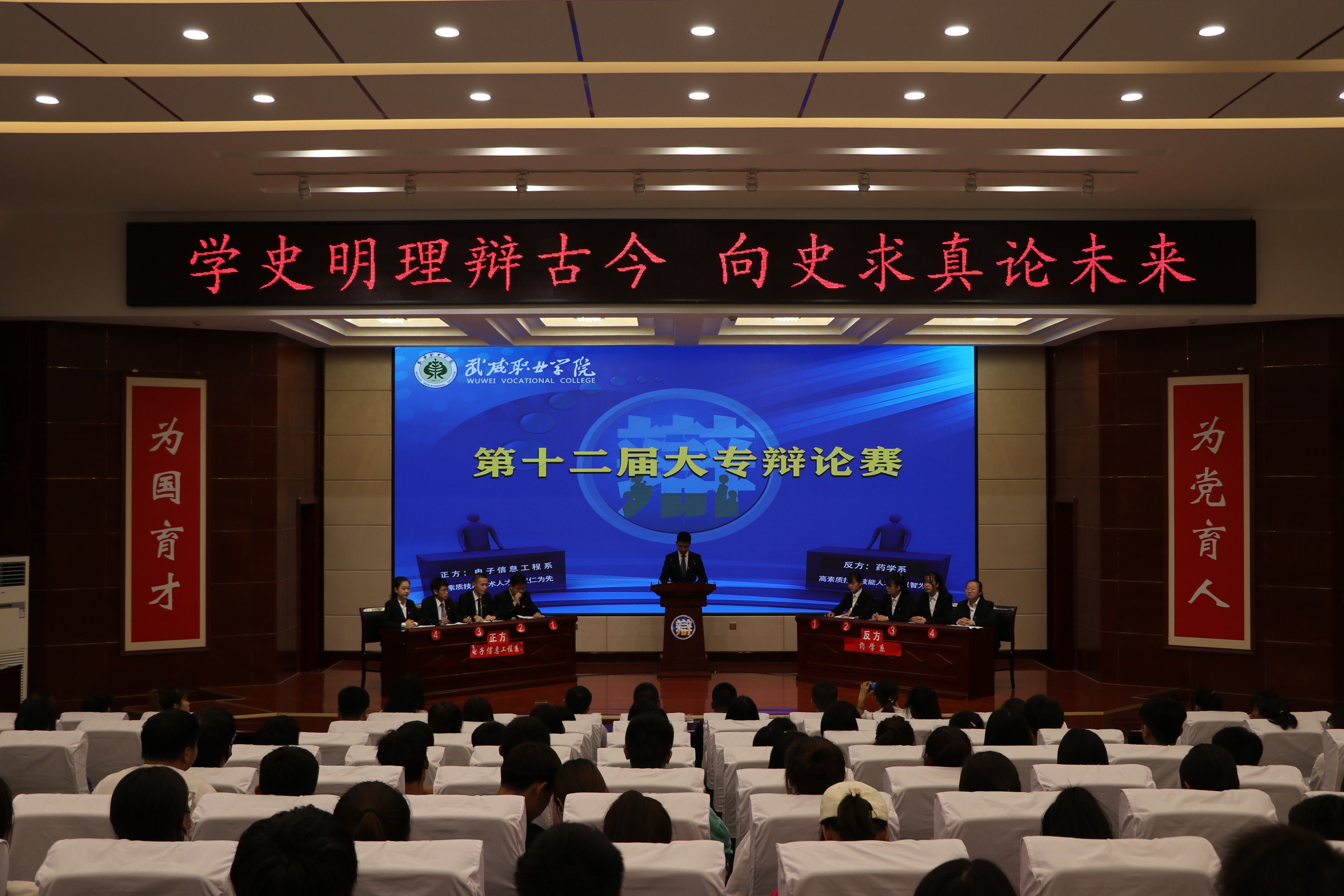 ? 2021年 7月1日晚武威職業(yè)學(xué)院第十二屆大專辯論賽在大學(xué)生活動(dòng)中心菁英廳成功舉行。