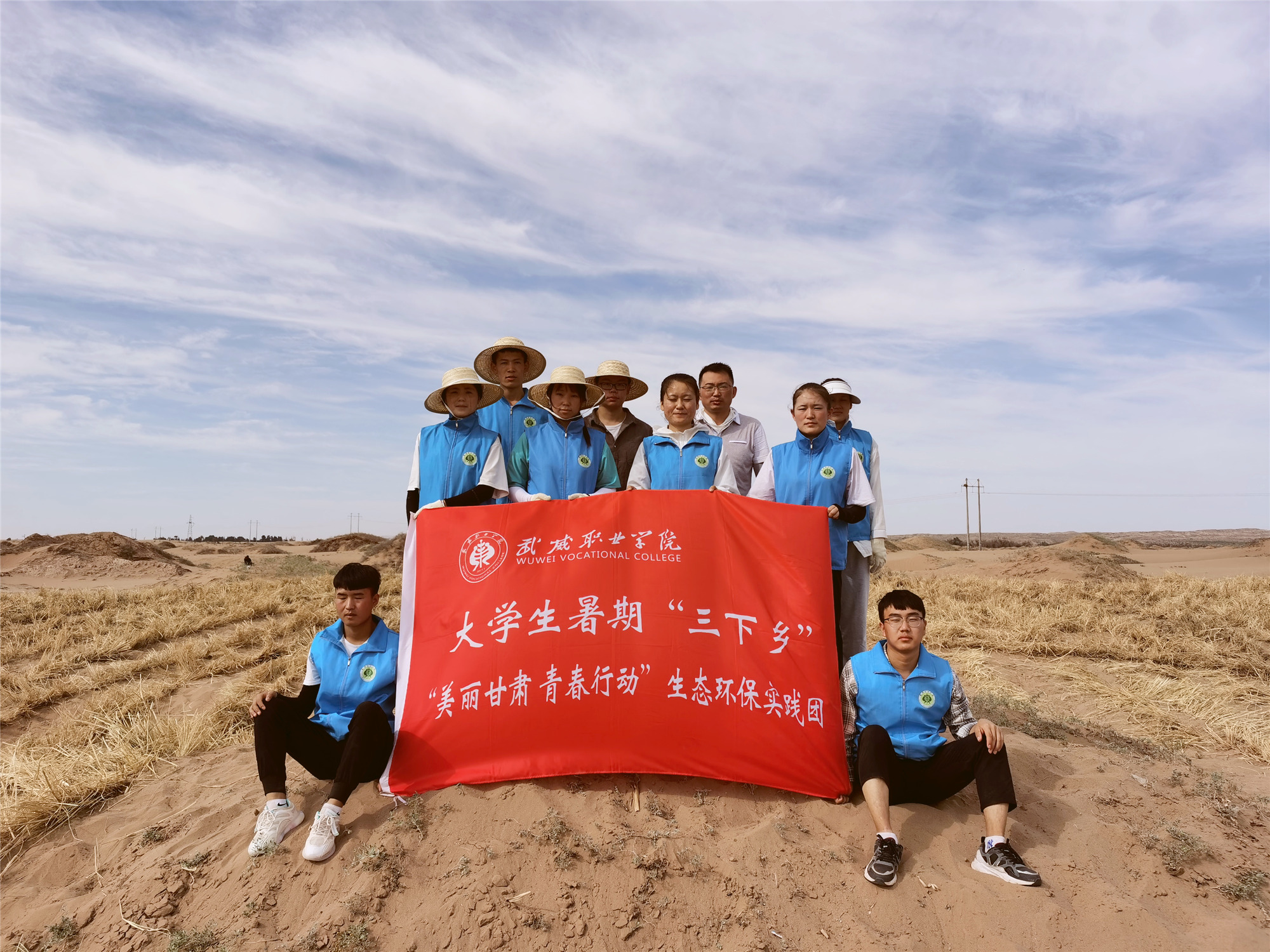 為深入學(xué)習(xí)貫徹習(xí)近平總書記生態(tài)文明建設(shè)重要戰(zhàn)略思想,引導(dǎo)和幫助學(xué)院青年學(xué)生積極融入武威市創(chuàng)建文明城市,以實(shí)際行動(dòng)致力于荒漠化治理、踐行兩山理論。2021年7月15日至21日,在武威職業(yè)學(xué)院團(tuán)委、教學(xué)院系指導(dǎo)下,來自7個(gè)專業(yè)、1名留學(xué)生所組成的“美麗甘肅 青春行動(dòng)”青少年生態(tài)環(huán)保行動(dòng)暑期社會(huì)實(shí)踐小隊(duì)奔赴武威市三縣一區(qū)部分地區(qū)進(jìn)行“綠色夢(mèng)想·戈壁荒漠‘智’富行動(dòng)”暑期社會(huì)實(shí)踐。