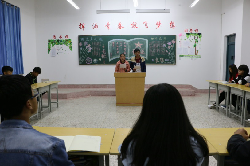 在這次主題活動中,能源系各班積極參加,展示了別具一格的班級風采,在本班團支部書記的組織下,開展了豐富多彩的活動。特別是16級光伏班,團支部書記朱奇前致開幕詞: 80周年的今天,長征途中那驚天動地傳神的英雄壯舉,仿佛就在眼前那隆隆的炮聲。震天的吶喊,仿佛就在耳邊,成為我們成長進步的無窮動力。接下來,各班召開了主題班會。以紀念紅軍長征勝利80 周年,緬懷紅軍創(chuàng)建的豐功偉績,追思和弘揚長征精神,爭做文明誠信小公民。在這濃厚的氛圍中,我們被深深感動著,他雖然離我們漸漸遙遠,但我們不能忘卻這段歷史。我們紀念紅軍長征勝利,就是要重溫長征精神,牢記長征精神,弘揚長征精神。把長征精神一代一代傳下去,讓長征精神永放光芒。