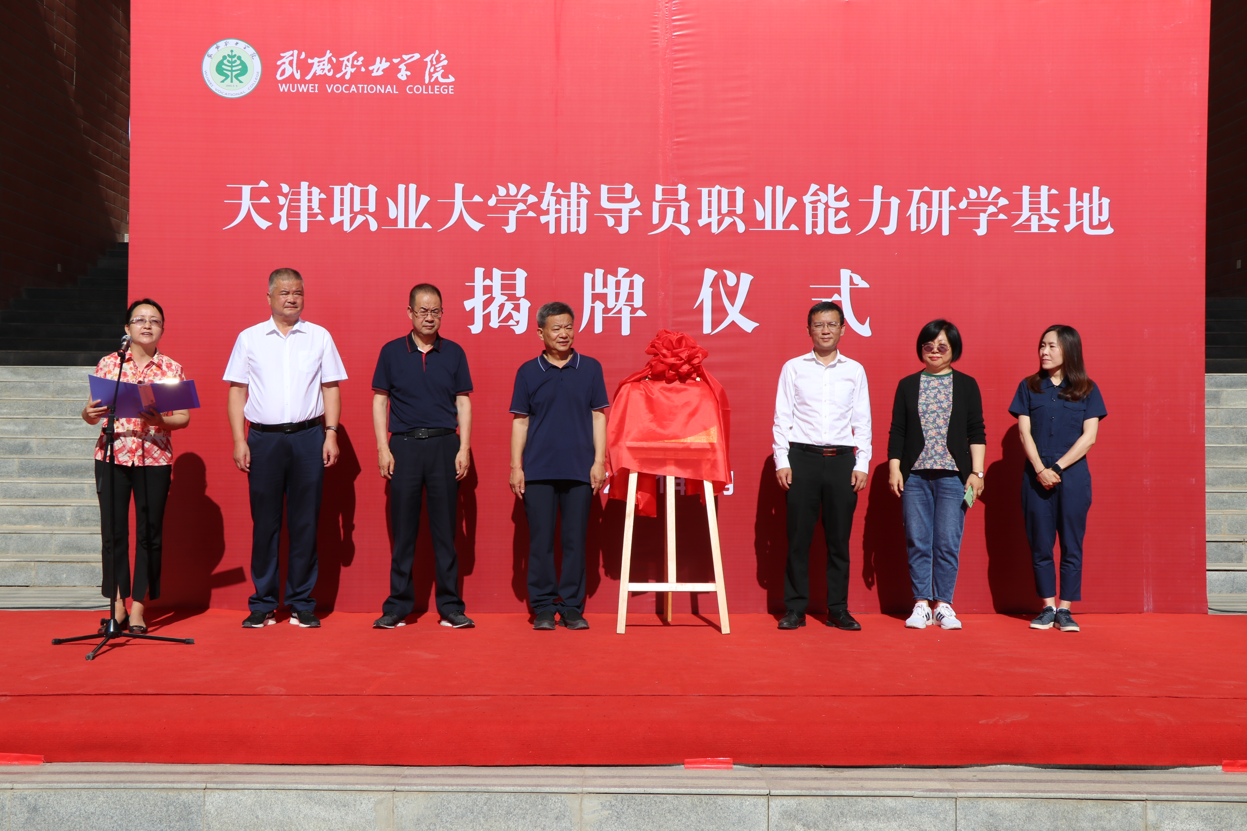 參觀結(jié)束后,在學(xué)生發(fā)展中心門口舉行天津職業(yè)大學(xué)輔導(dǎo)員職業(yè)能力研學(xué)基地揭牌儀式。天津職業(yè)大學(xué)與我院簽訂了《天津職業(yè)大學(xué)輔導(dǎo)員職業(yè)能力研學(xué)基地共建協(xié)議》,并互贈紀(jì)念品。通過研學(xué)基地共建,雙方相互借鑒在輔導(dǎo)員隊(duì)伍建設(shè)培養(yǎng)、學(xué)校德育工作的理念和做法,推進(jìn)高校輔導(dǎo)員隊(duì)伍建設(shè),加強(qiáng)兩校間深度合作,不斷提升育人質(zhì)量,構(gòu)建新時(shí)代的高校德育工作格局。
