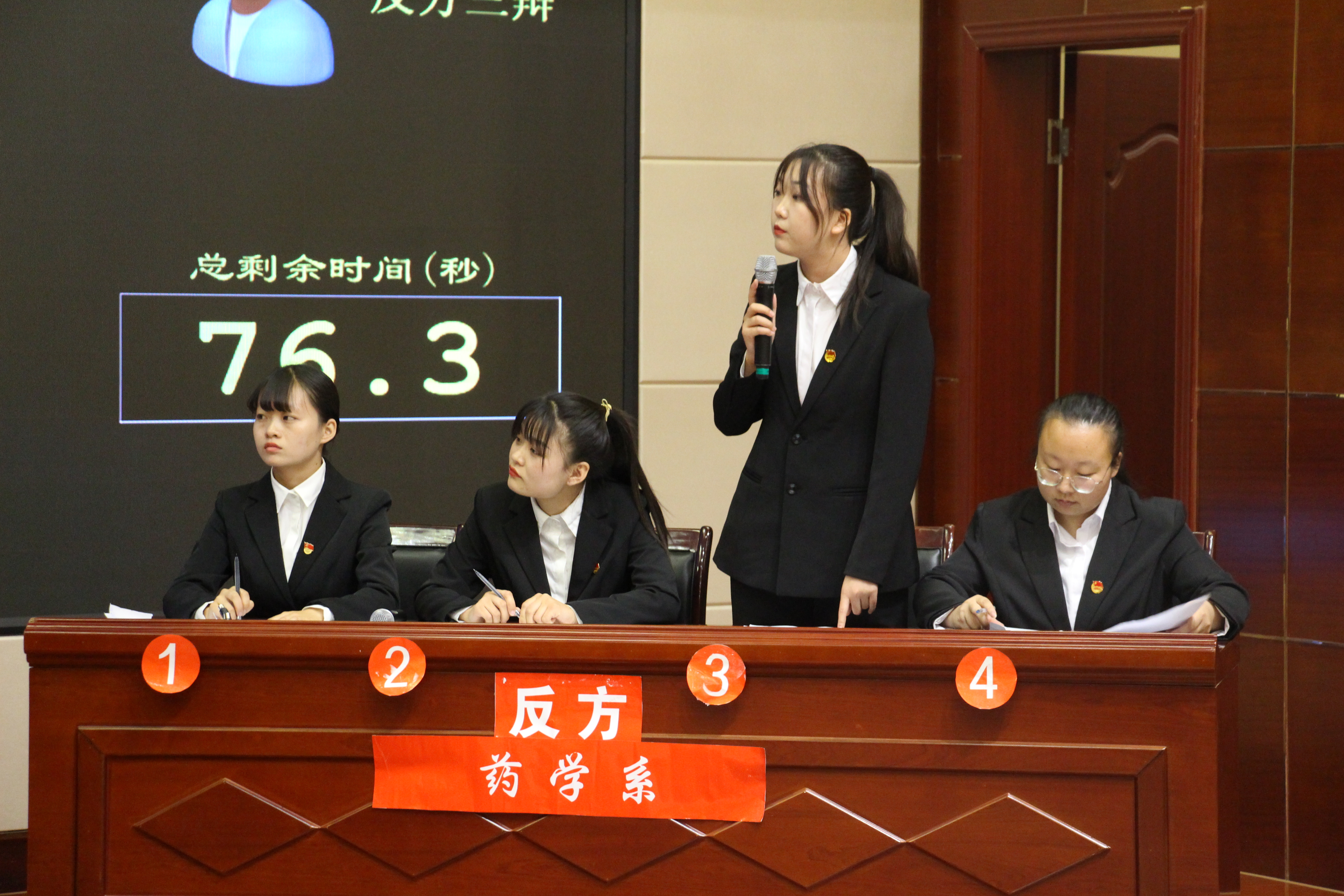 經(jīng)過11場(chǎng)次的比賽,電子信息工程系代表隊(duì)和藥學(xué)系代表隊(duì)進(jìn)入最后決賽。決賽現(xiàn)場(chǎng),正反雙方針對(duì)高素質(zhì)技術(shù)技能人才以“仁”還是以“智”為先拉開激烈交戰(zhàn)。雙方選手在立論、駁立論、攻辯等環(huán)節(jié)中思路清晰,引經(jīng)據(jù)典,高潮迭起。自由辯論環(huán)節(jié),雙方唇槍舌戰(zhàn),針鋒相對(duì),步步為營(yíng),愈辯愈烈,精彩紛呈,觀眾也積極互動(dòng),現(xiàn)場(chǎng)氣氛十分活躍。