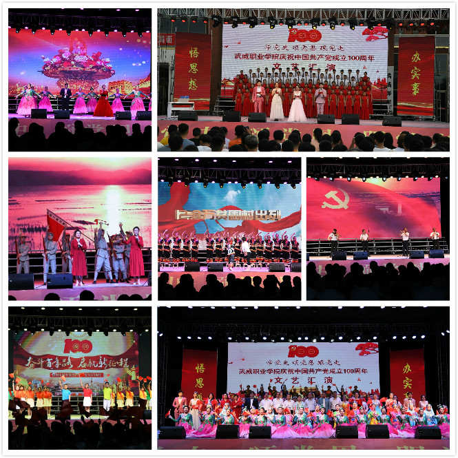 “學(xué)黨史 頌黨恩 跟黨走”——6月29日晚上,武威職業(yè)學(xué)院慶祝建黨100周年文藝匯演在學(xué)生活動(dòng)中心前廣場(chǎng)隆重舉行。