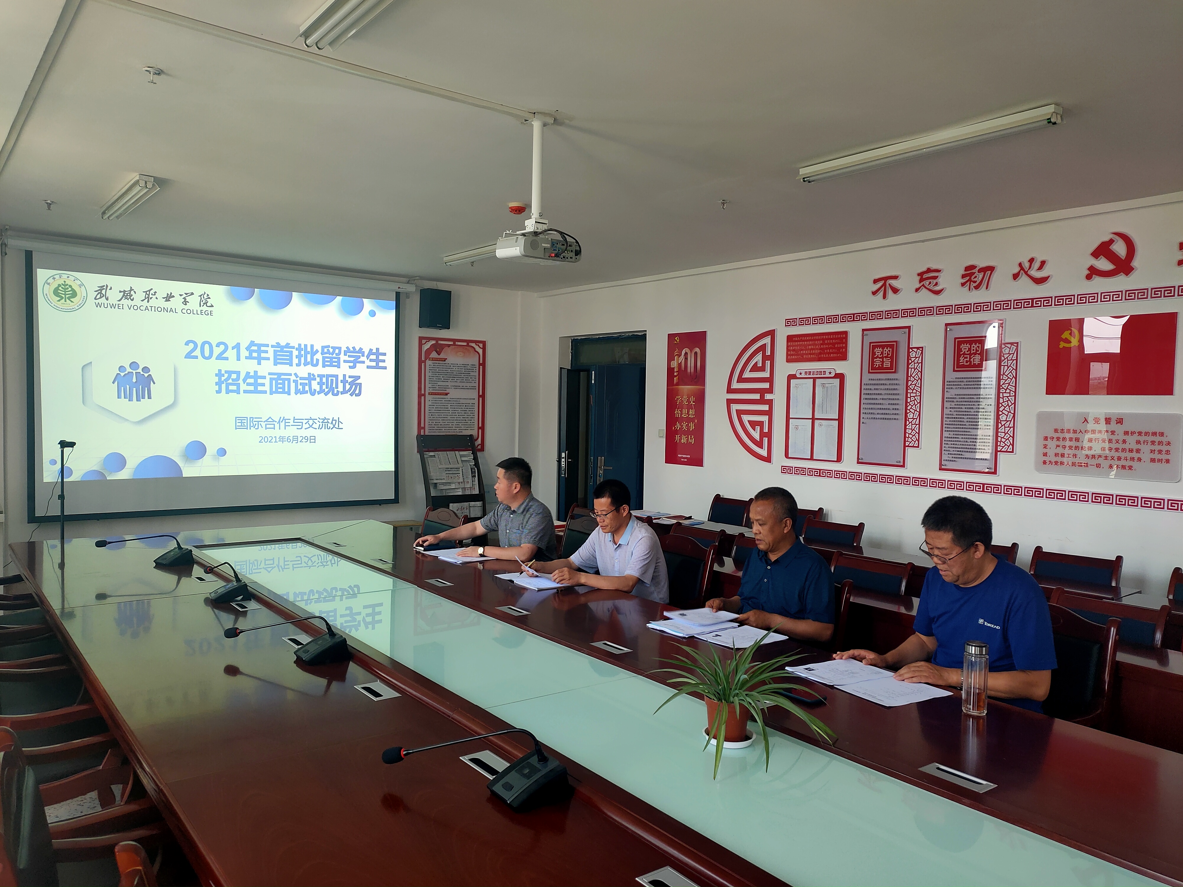 6月29日下午,學(xué)院在經(jīng)緯樓306多媒體會議室開展2021級首批來華留學(xué)生招生面試工作。黨委書記、院長趙明對來華留學(xué)生招生面試工作提出要求,來華留學(xué)生招生面試工作要嚴(yán)格遵守國家、省市有關(guān)規(guī)定和規(guī)范,要綜合考慮國家需要和社會公共利益,要服務(wù)學(xué)院“雙高”建設(shè)大局,要遵循規(guī)范、公開、公平的原則,招收和選拔有學(xué)業(yè)能力和發(fā)展?jié)摿Φ膩砣A留學(xué)生,保障和持續(xù)提高生源質(zhì)量,堅持原則,守住底線,確保平安留學(xué)、健康留學(xué)、成功留學(xué)。