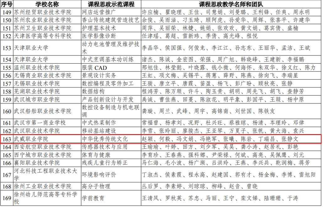 近日,教育部印發(fā)《教育部關(guān)于公布課程思政示范項(xiàng)目名單的通知》(教高函2021 7號(hào)),確定了首批699門課程思政示范課程和699個(gè)課程思政教學(xué)名師和團(tuán)隊(duì)、30個(gè)課程思政教學(xué)研究示范中心。我院《 中華優(yōu)秀傳統(tǒng)文化》課程、教學(xué)名師和團(tuán)隊(duì)成功入選教育部職業(yè)教育類課程思政示范課程、課程思政教學(xué)名師和團(tuán)隊(duì)。