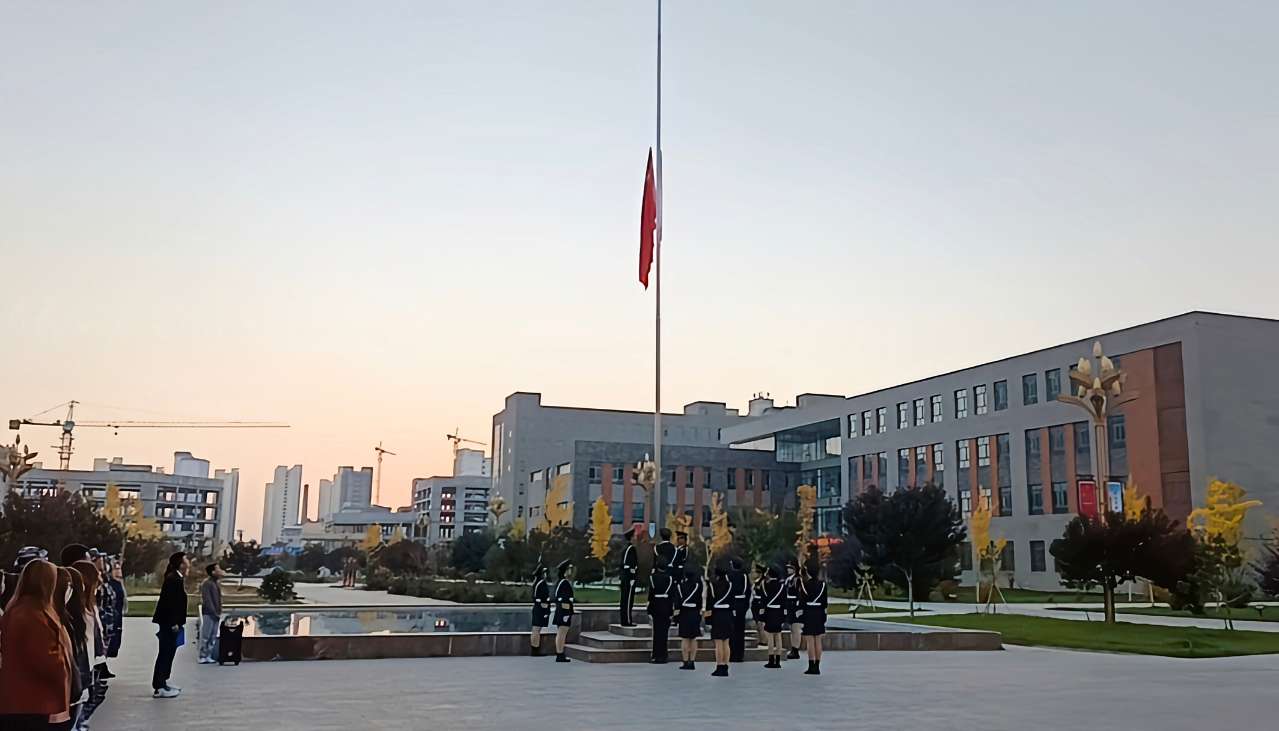 迎著朝陽,國旗護(hù)衛(wèi)隊隊員邁著鏗鏘的步伐來到了國旗臺下,全場一片肅靜。全體師生面向國旗莊嚴(yán)肅立,行注目禮,伴隨著激昂的國歌,五星紅旗冉冉升起。