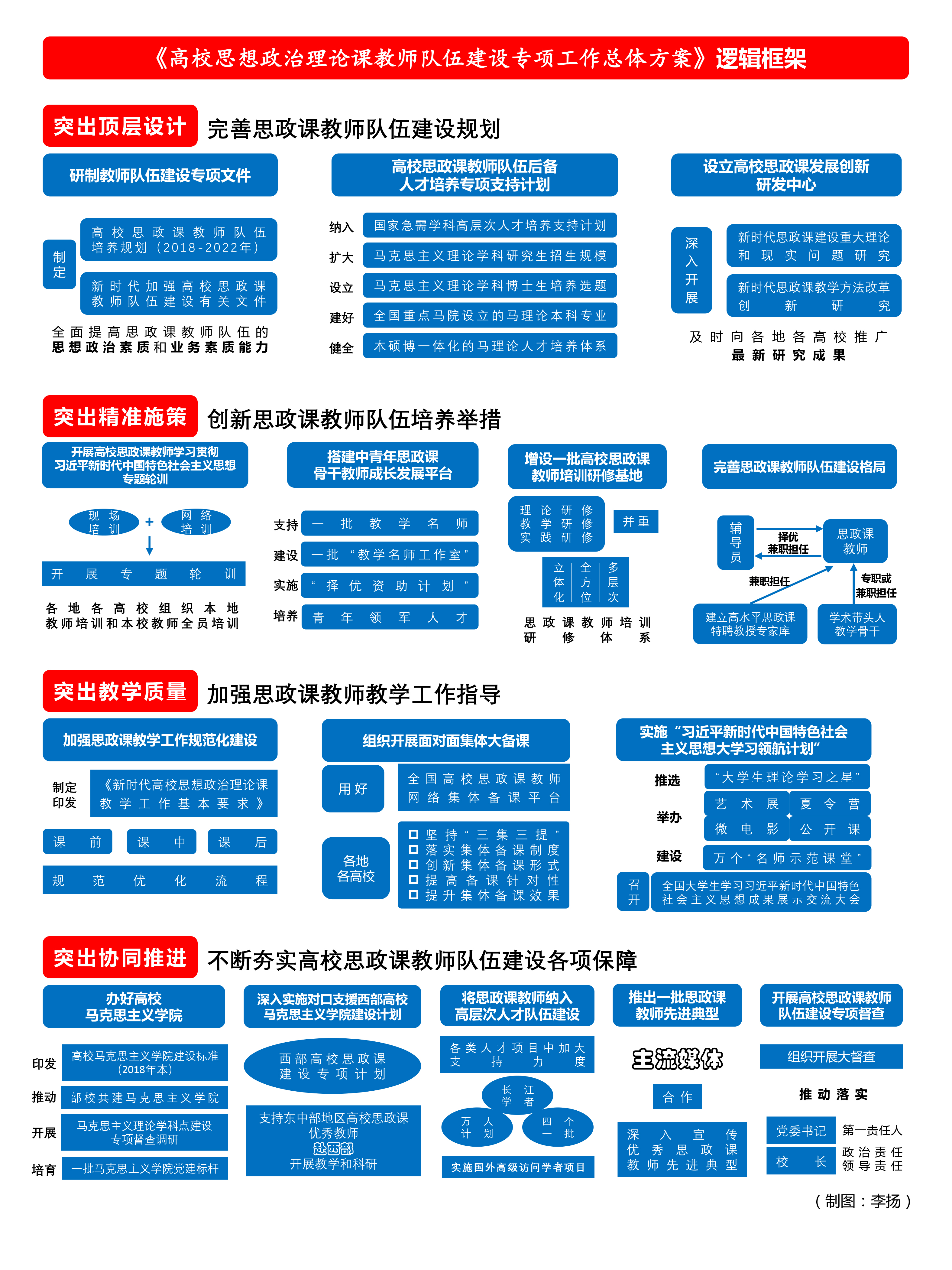 為全面推動(dòng)習(xí)近平新時(shí)代中國(guó)特色社會(huì)主義思想進(jìn)教材進(jìn)課堂進(jìn)學(xué)生頭腦,聚焦提升思政課教師綜合素質(zhì)和專業(yè)化水平,繼續(xù)打好提高高校思政課質(zhì)量和水平的攻堅(jiān)戰(zhàn),培養(yǎng)擔(dān)當(dāng)民族復(fù)興大任的時(shí)代新人,教育部決定2018年實(shí)施高校思想政治理論課教師隊(duì)伍建設(shè)專項(xiàng)工作,并于日前印發(fā)了工作總體方案。