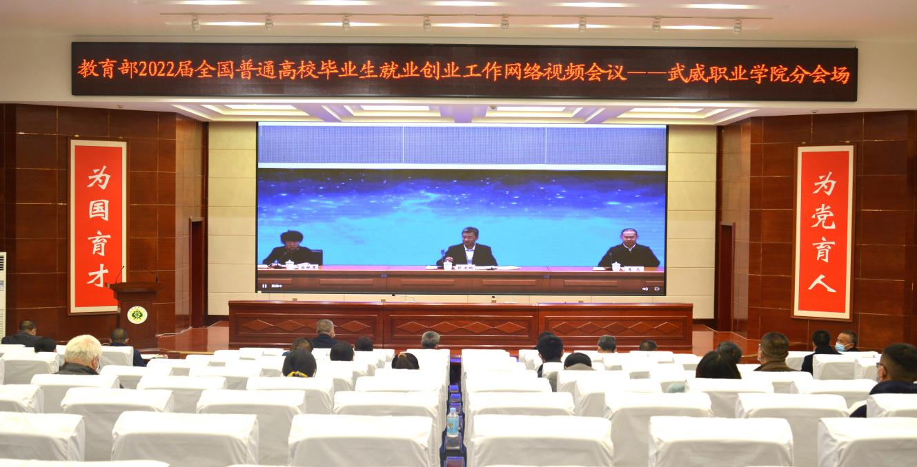 11月19日下午,教育部、人力資源社會保障部召開2022屆普通高校畢業(yè)生就業(yè)視頻會議。教育部黨組書記、部長懷進(jìn)鵬,人力資源社會保障部黨組成員、副部長李忠出席會議并講話,教育部黨組成員、副部長翁鐵慧主持會議。我院設(shè)立武威職業(yè)學(xué)院分會場,學(xué)院黨委書記、院長趙明,副院長王守云,招就處、雙創(chuàng)中心、學(xué)工處相關(guān)負(fù)責(zé)同志,各教學(xué)院系黨總支書記、主任、就業(yè)工作輔導(dǎo)員及畢業(yè)班班主任共計(jì)86人,在學(xué)院學(xué)生發(fā)展中心菁英廳集中參加網(wǎng)絡(luò)視頻會議。