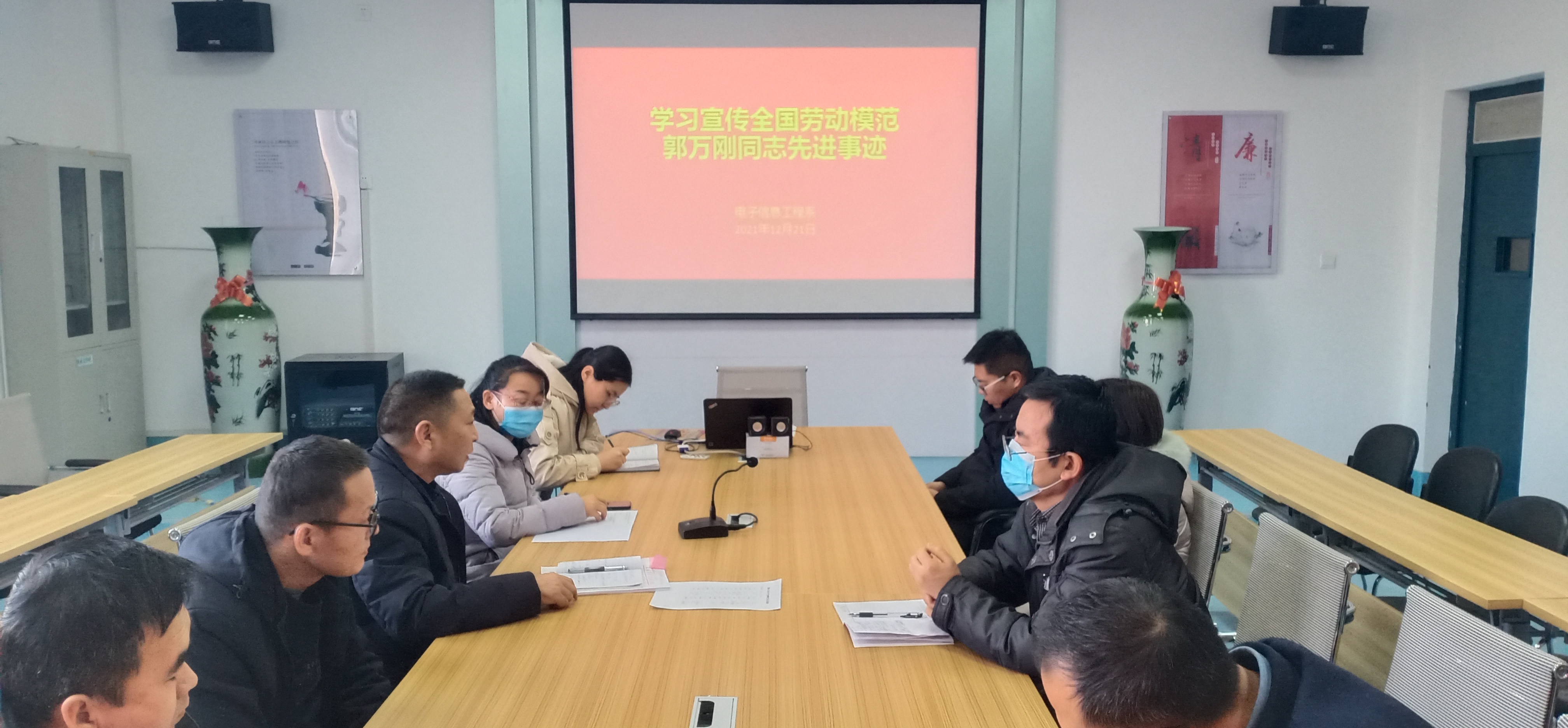 12月23日下午,電子信息工程系組織全體教師在明德樓409會(huì)議室學(xué)習(xí)全國(guó)勞動(dòng)模范郭萬剛同志先進(jìn)事跡。