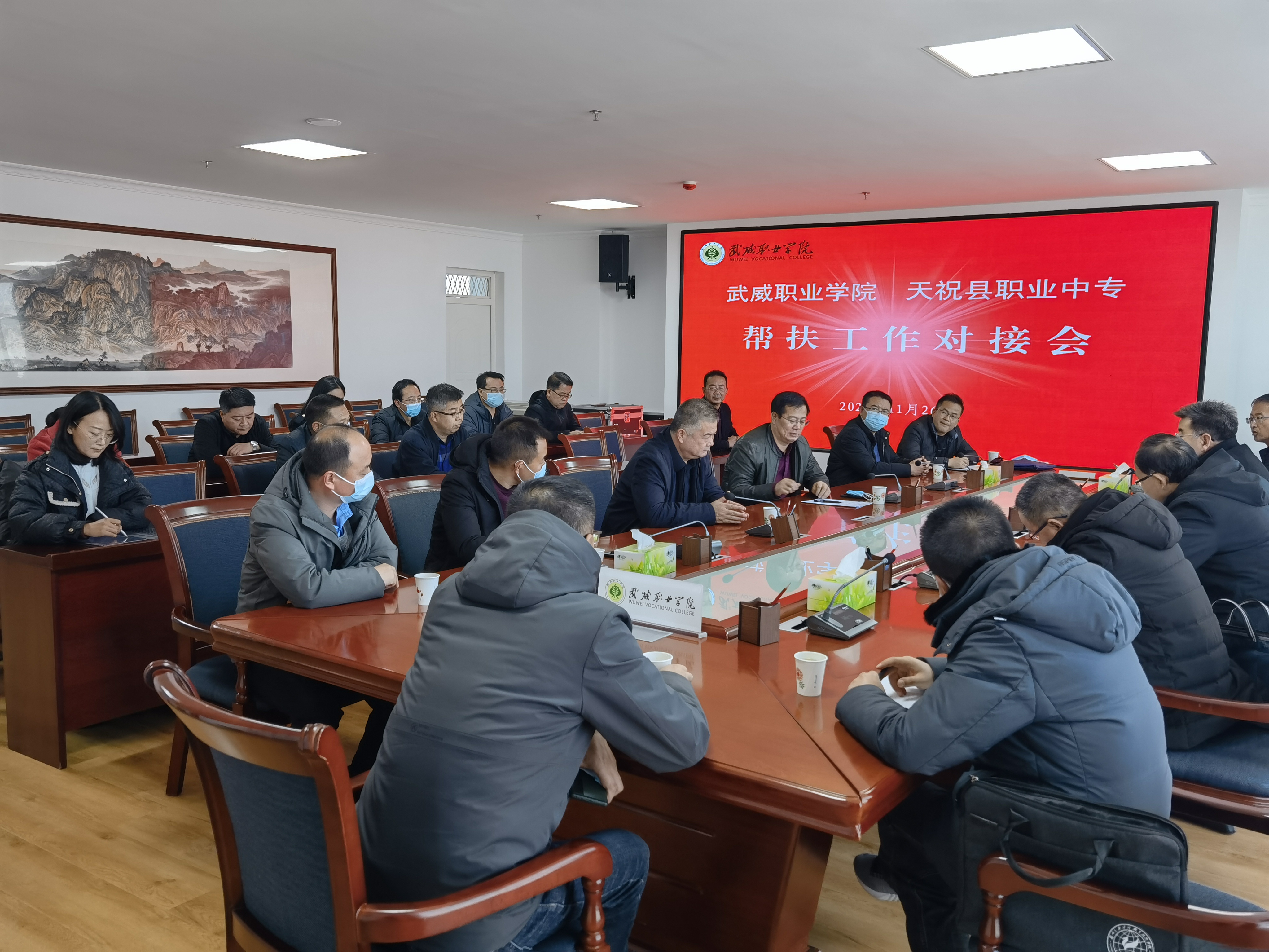 11月26日上午,學院、天祝縣職業(yè)中專幫扶工作對接會議在能源科技樓811會議室召開。天祝縣教育局評價中心主任李福、天祝縣職業(yè)中專黨委書記、校長鄭文,學院黨委委員、副院長張開禮、王守云出席會議,相關部門負責人參加會議。