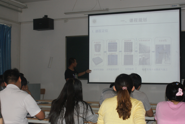首先,上學(xué)期五位老師對(duì)課改完成情況進(jìn)行交流匯報(bào)。顏魯薪、何立國(guó)、張國(guó)祥、袁亞琳和張娟老師分別就上學(xué)期所帶課程《光伏材料制備與加工》、《光伏產(chǎn)品的生產(chǎn)與質(zhì)檢》、《電氣與PLC控制系統(tǒng)的運(yùn)行與維護(hù)》、《風(fēng)能與利用技術(shù)》及《電力電子技術(shù)》等五門(mén)課程從課程規(guī)劃、課程實(shí)施、成果展示、教學(xué)評(píng)價(jià)四個(gè)方面進(jìn)行了詳細(xì)的匯報(bào)。