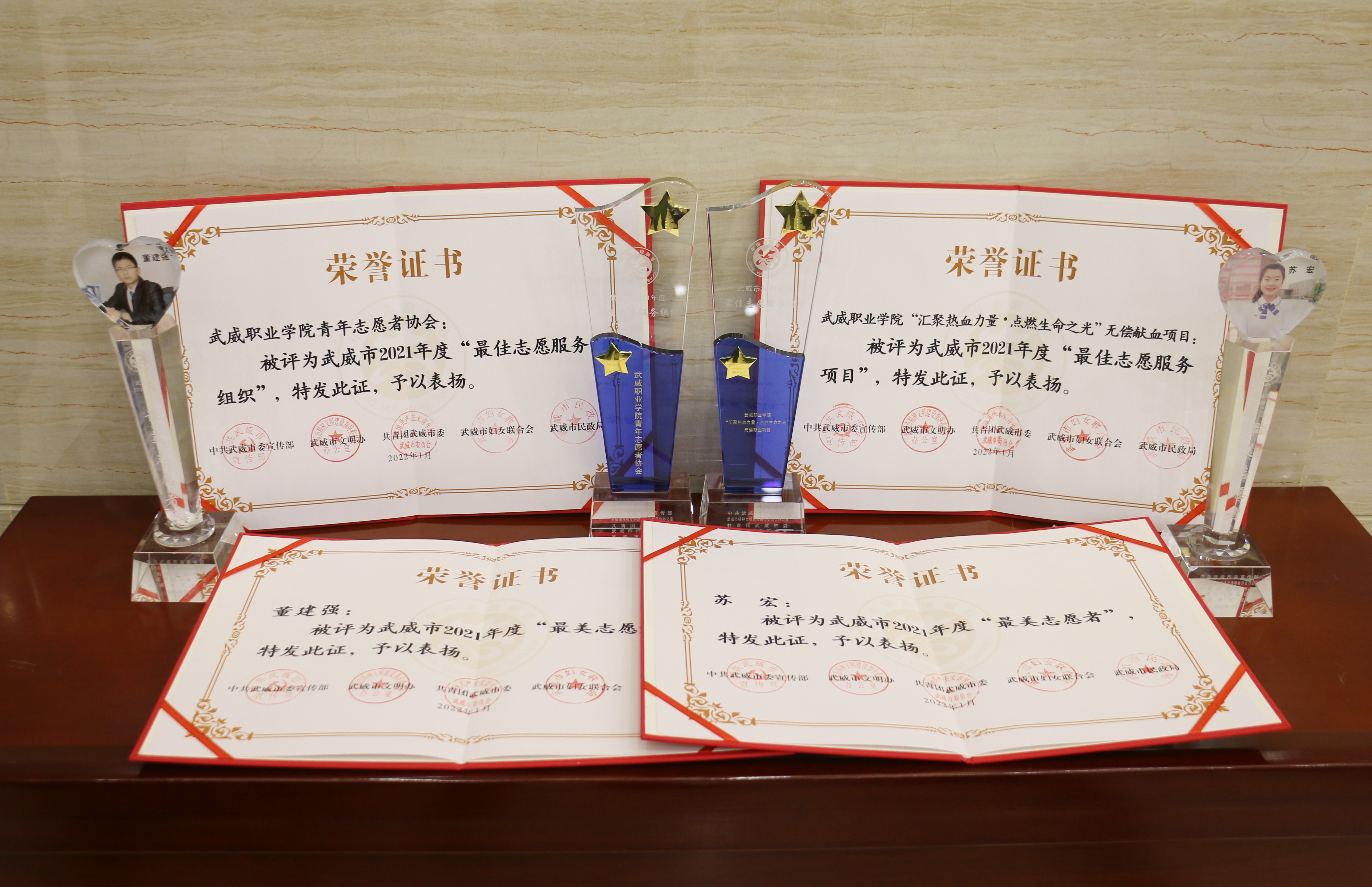 啟動儀式上,對獲得武威市2021年度“最美志愿者”“最佳志愿服務組織”“最佳志愿服務項目”“最美志愿服務社區(qū)”稱號的集體和個人頒發(fā)了證書和獎杯。我校青年志愿者協(xié)會獲得“最佳志愿服務組織”榮譽稱號,“匯聚熱血力量·點燃生命之光”無償獻血志愿服務項目獲得“最佳志愿服務項目”榮譽稱號,兩名師生獲得“最美志愿者”榮譽稱號。