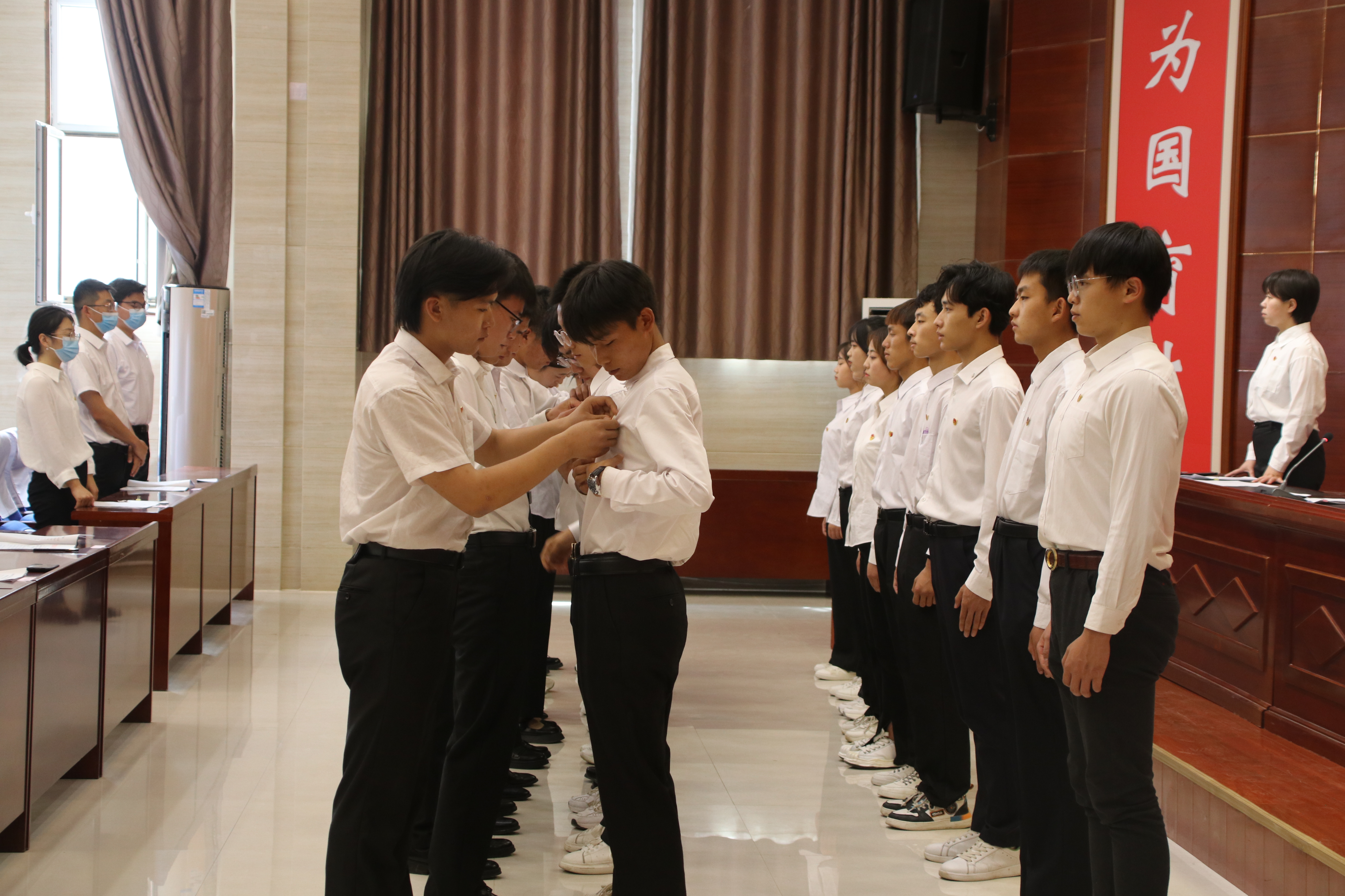 入團儀式上,校團委老師劉吉仁宣讀了82名新團員名單,校團委老師謝麗霞向新團員闡釋了團徽的組成及象征的意義,請老團員代表為新團員代表佩戴了團徽,并帶領(lǐng)全體新老團員面對鮮艷的團旗,緊握右拳莊嚴進行了宣誓。