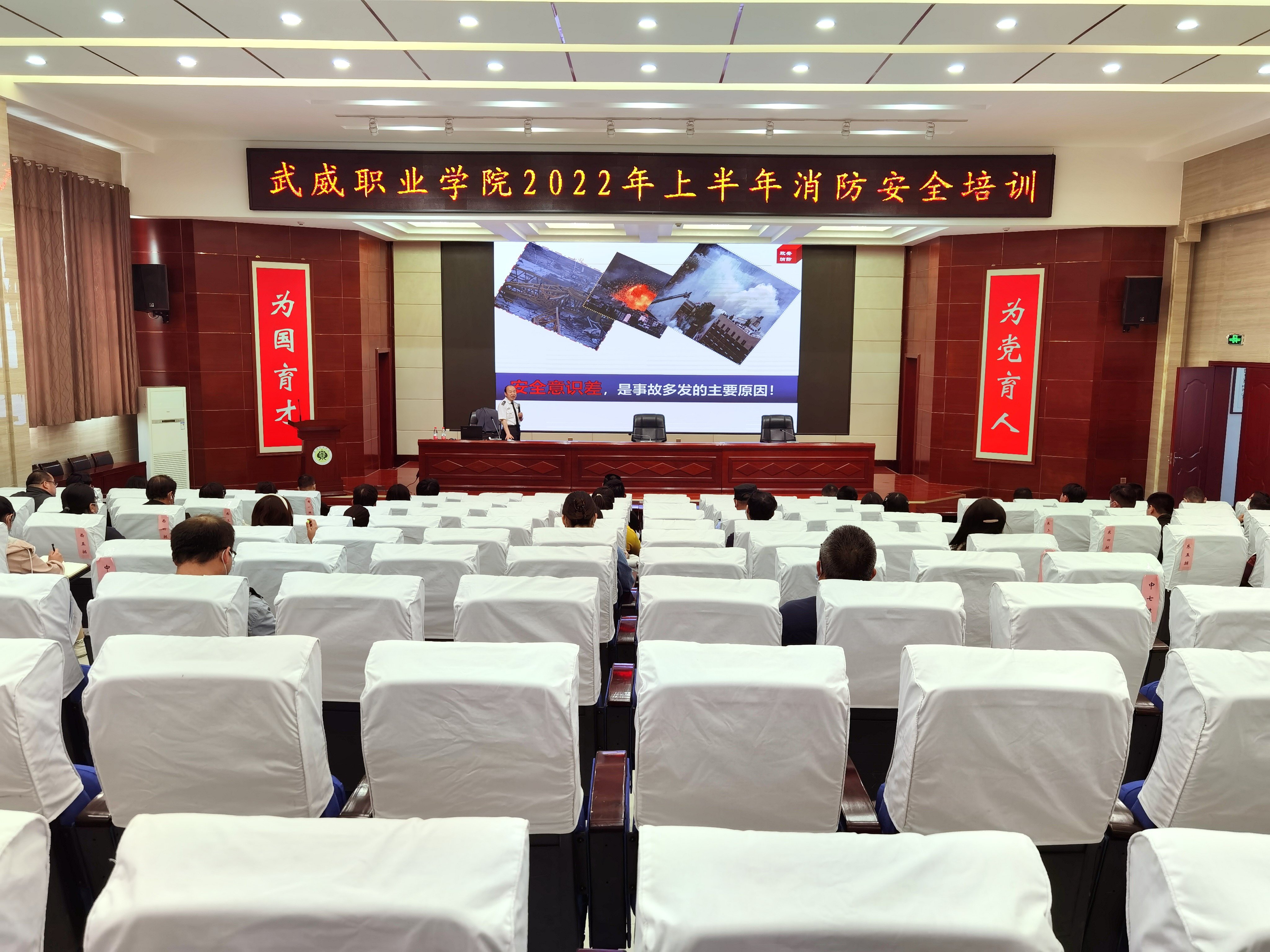 5月18日下午,學(xué)校在大學(xué)生發(fā)展中心菁英廳舉辦了2022年上半年消防安全知識培訓(xùn)。蘭州政安消防教官宋海斌應(yīng)邀作了“減輕災(zāi)害風(fēng)險(xiǎn),守護(hù)美好家園”專題講座。各部門、二級學(xué)院安全信息員、實(shí)驗(yàn)實(shí)訓(xùn)室管理員、新進(jìn)教師和消控室、學(xué)生食堂等重點(diǎn)管理崗位人員參加了培訓(xùn)。