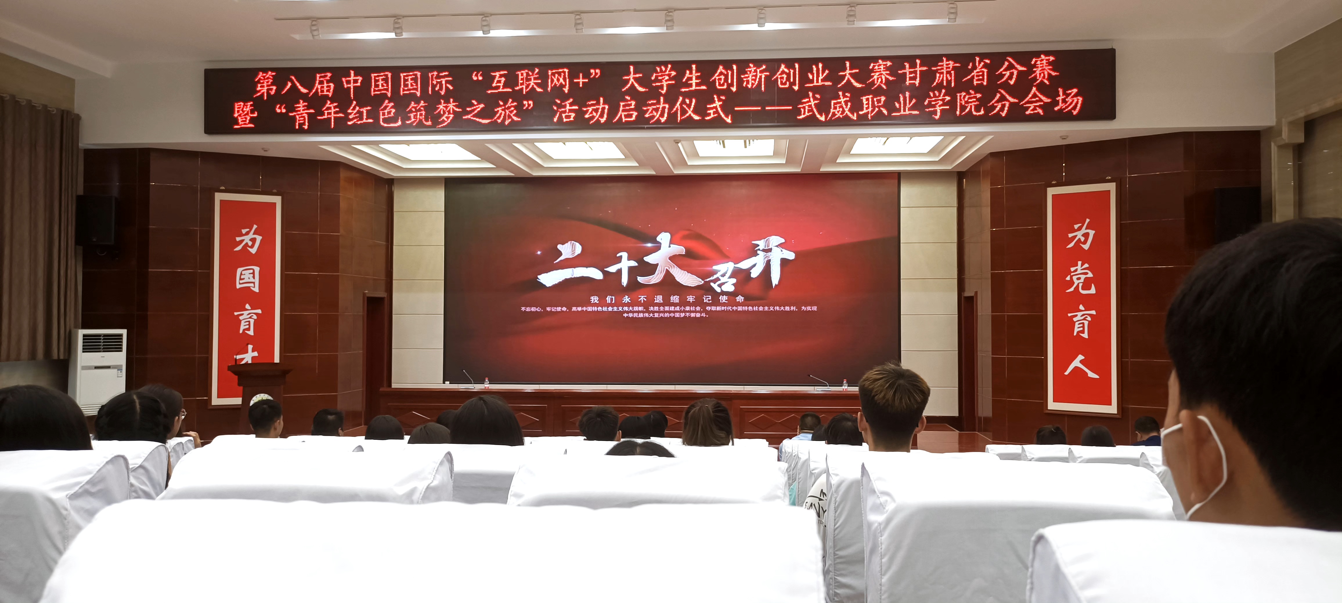 第二階段為我校啟動(dòng)儀式,師生觀看了我校拍攝的“青年紅色筑夢(mèng)之旅”暖場(chǎng)祝福視頻。學(xué)校黨委委員、副校長張開禮在講話中提出三點(diǎn)要求,一是要提高認(rèn)識(shí),廣泛動(dòng)員,充分調(diào)動(dòng)師生的積極性和創(chuàng)造力,在參賽數(shù)量上實(shí)現(xiàn)新增長;二是立足地方、交叉融合、服務(wù)產(chǎn)業(yè),在大賽成績(jī)上實(shí)現(xiàn)新突破;三要以釘釘子精神,充分打磨項(xiàng)目展現(xiàn)風(fēng)采,體現(xiàn)真創(chuàng)新、實(shí)創(chuàng)業(yè),在大賽平臺(tái)中展現(xiàn)武威職業(yè)學(xué)院師生的新形象。