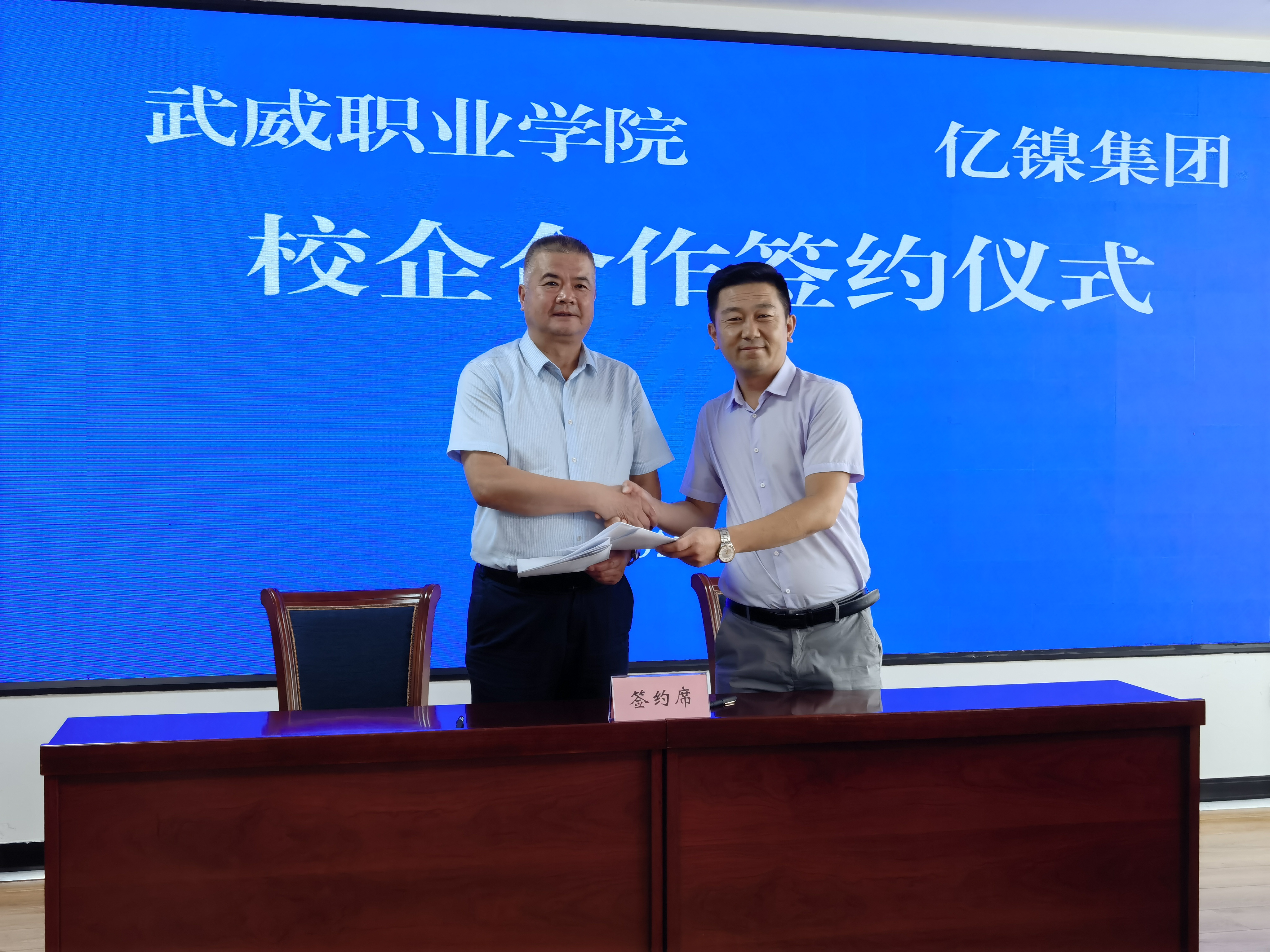 金昌市來校企業(yè)代表億鎳集團(tuán)總經(jīng)理宋飛林介紹了集團(tuán)概況。他從集團(tuán)產(chǎn)業(yè)需求出發(fā),在專業(yè)設(shè)置、人才培養(yǎng)、實習(xí)實訓(xùn)共建等方面進(jìn)行了深入交流。雙方均表示,后續(xù)要在產(chǎn)教融合、產(chǎn)學(xué)研合作、儲能研究中心建設(shè)、高層次人才技術(shù)專家共享、教師實踐基地建設(shè)、畢業(yè)生見習(xí)與就業(yè)等方面開展實質(zhì)性合作。王守云與億鎳集團(tuán)副總經(jīng)理梁劍代表雙方簽訂了校企合作框架協(xié)議。