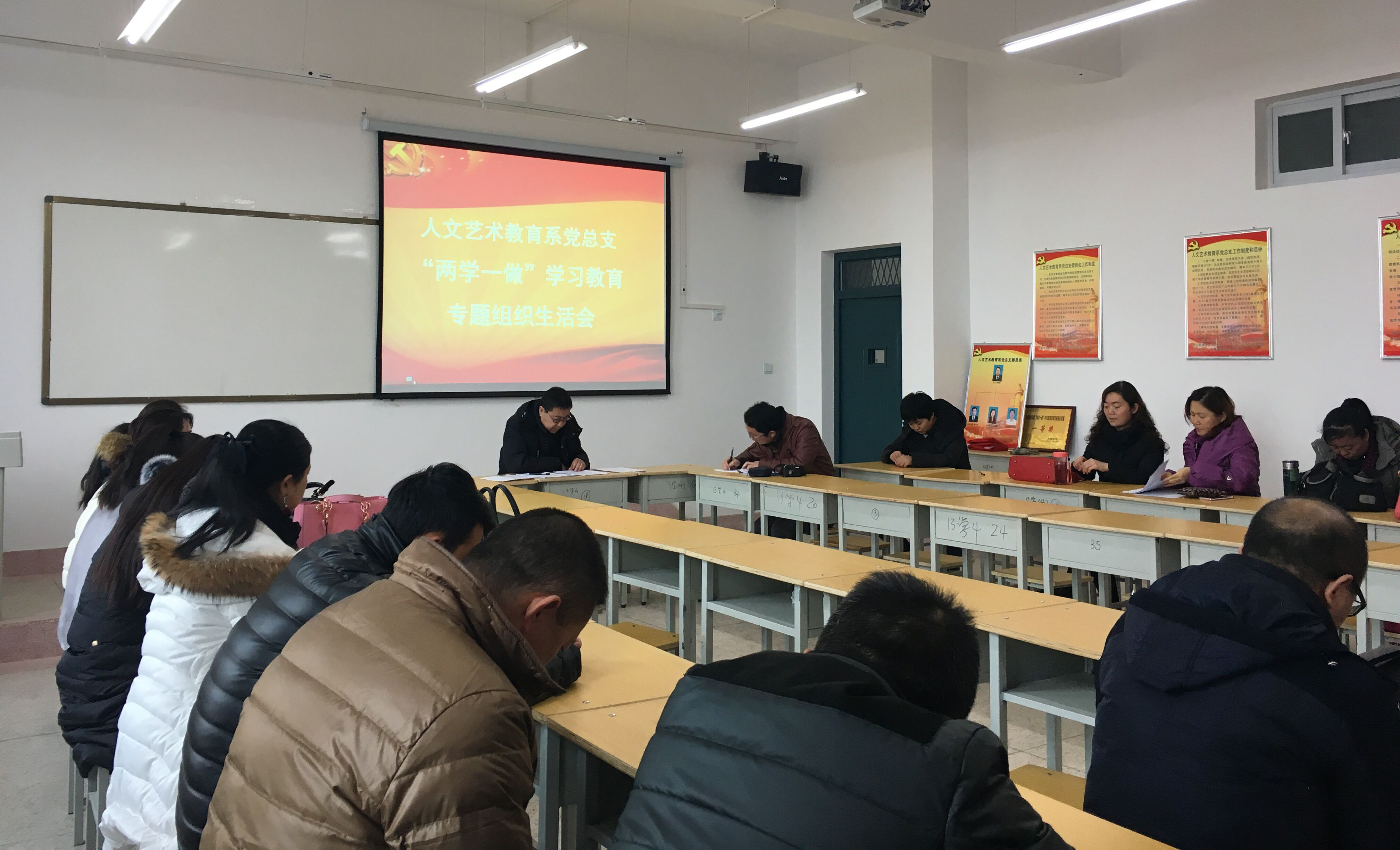 1月10日下午,人文藝術(shù)教育系黨總支在勵(lì)勤樓403黨員活動(dòng)室召開(kāi)了“兩學(xué)一做”學(xué)習(xí)教育專(zhuān)題組織生活會(huì)和民主評(píng)議黨員大會(huì),會(huì)議由系黨總支書(shū)記胡靜峰同志主持,全體黨員及部分群眾參加了會(huì)議。