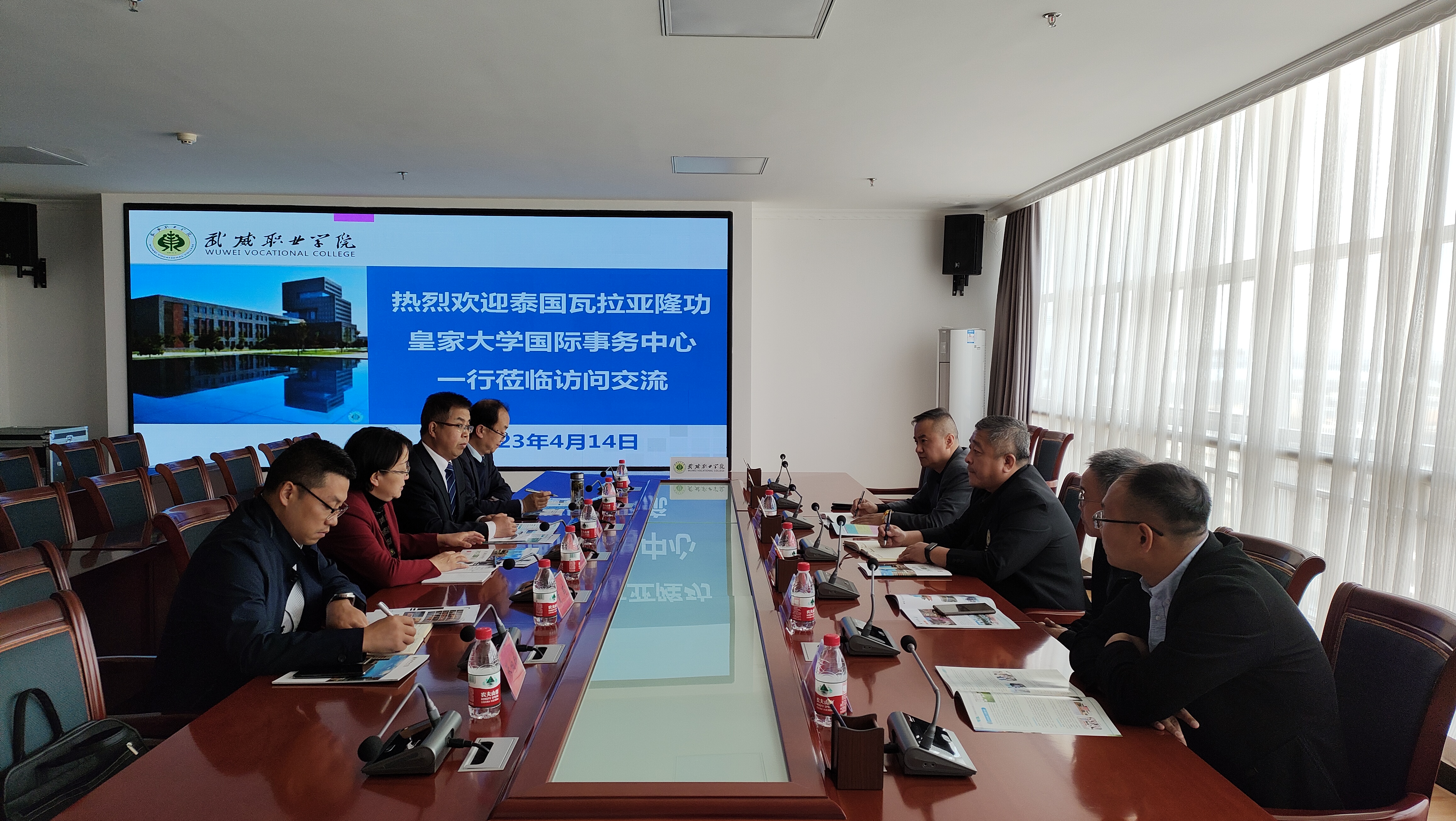 4月14日下午,泰國瓦拉亞隆功皇家大學(xué)國際事務(wù)中心主任一行4人對(duì)學(xué)校進(jìn)行了友好訪問。瓦拉亞隆功皇家大學(xué)國際事務(wù)中心主任王天松教授,瓦拉亞隆功皇家大學(xué)中國區(qū)主任宋建達(dá),瓦拉亞隆功皇家大學(xué)甘肅片區(qū)主任閆學(xué)良以及副主任付幸林到訪學(xué)校。學(xué)校黨委委員、副校長田迎春出席交流座談會(huì),國際合作交流處、招生就業(yè)處、經(jīng)濟(jì)管理學(xué)院、護(hù)理學(xué)院、醫(yī)學(xué)技術(shù)學(xué)院負(fù)責(zé)人以及相關(guān)人員參加座談交流。