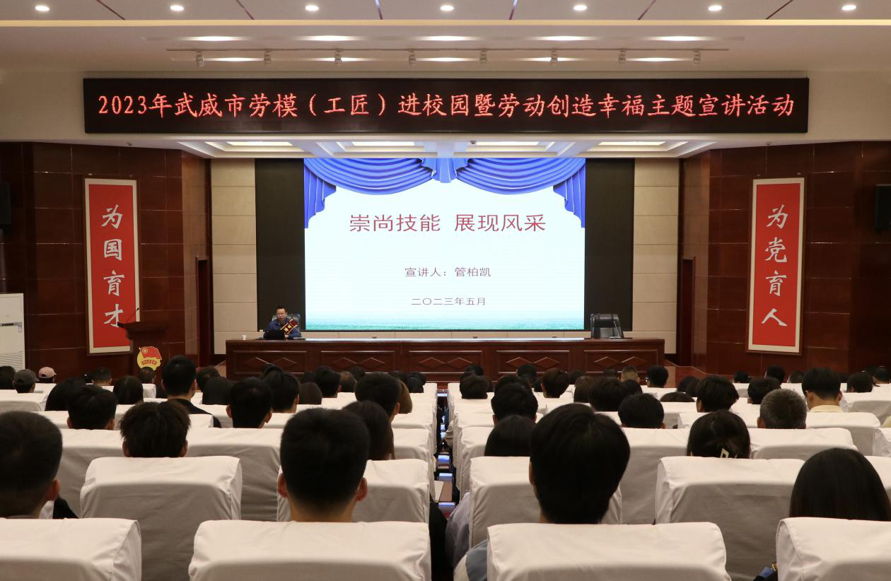 為貫徹落實(shí)全國職業(yè)教育大會(huì)精神,進(jìn)一步在師生中大力弘揚(yáng)勞模精神、勞動(dòng)精神和工匠精神,不斷推動(dòng)我?!疤豳|(zhì)培優(yōu)”“技能甘肅”和“雙高計(jì)劃”項(xiàng)目建設(shè)工作。5月15日上午,學(xué)校在學(xué)生發(fā)展中心菁英廳舉辦勞模(工匠)進(jìn)校園暨勞動(dòng)創(chuàng)造幸福主題宣講活動(dòng),邀請(qǐng)“甘肅省勞動(dòng)模范”“甘肅省青年崗位能手”獲得者、甘肅電投武威熱電公司電氣檢修班班長、安全監(jiān)察主管管柏凱作題為《崇尚技能 展現(xiàn)風(fēng)采》的專題報(bào)告。報(bào)告會(huì)由學(xué)校工會(huì)主席金玉龍主持,各相關(guān)部門負(fù)責(zé)人、省級(jí)“雙高計(jì)劃”高水平專業(yè)群師生代表共220人參加報(bào)告會(huì)。