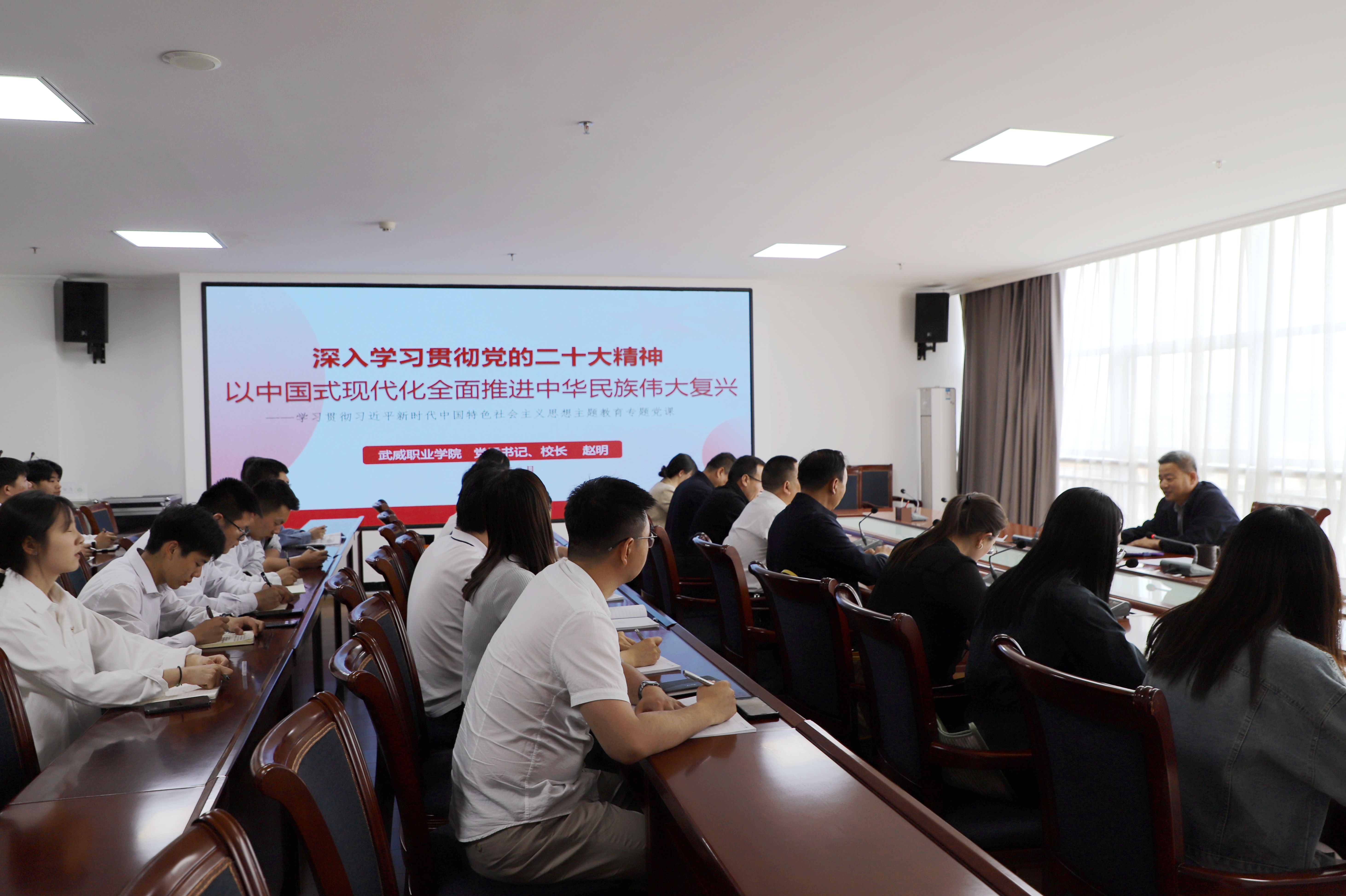5月31日下午,學校黨委書記、校長趙明以《深入學習貫徹黨的二十大精神 以中國式現(xiàn)代化全面推進中華民族偉大復興》為題,為馬克思主義學院全體教師黨員、學校青年教師黨員代表和學生黨員代表講授了一堂精彩生動的主題教育專題黨課。