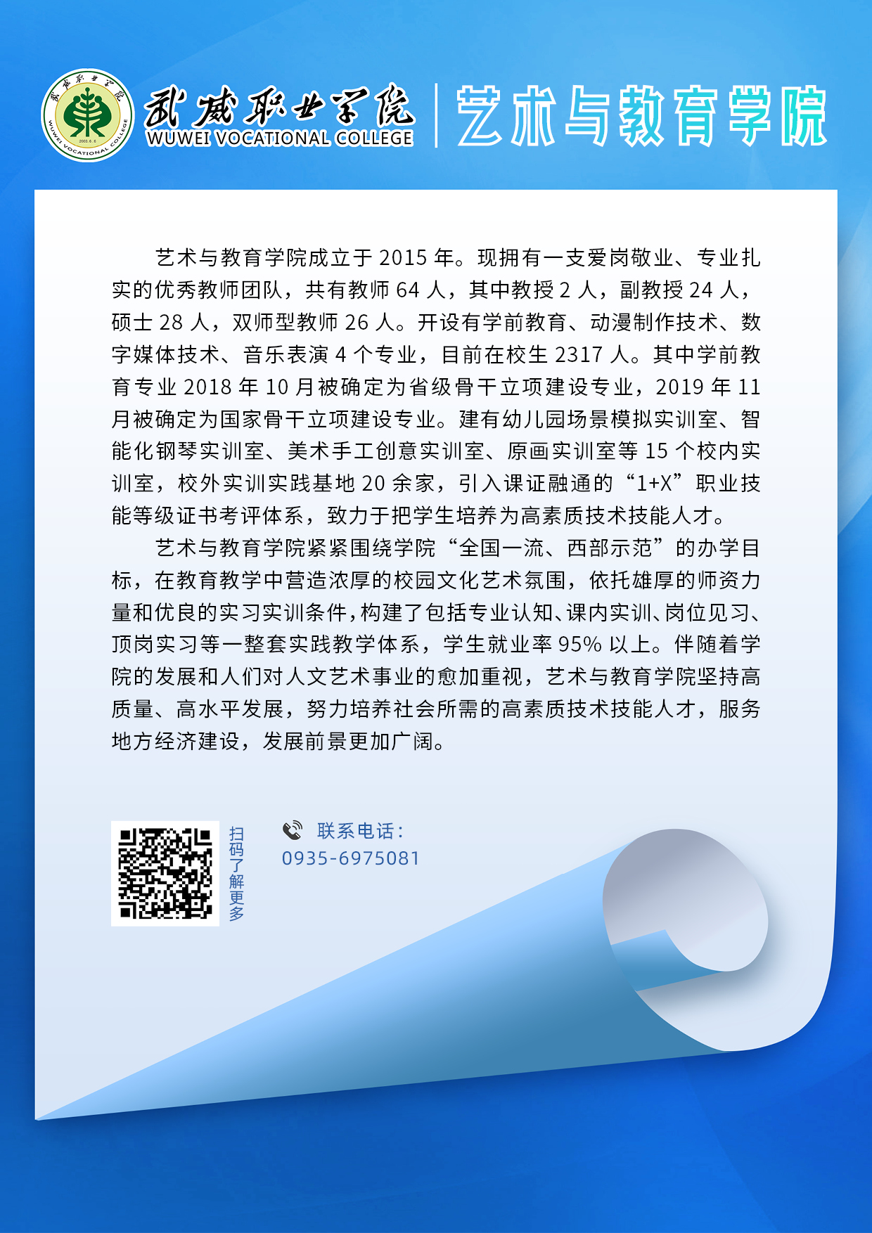 武威職業(yè)學(xué)院二級(jí)學(xué)院專(zhuān)業(yè)簡(jiǎn)介丨藝術(shù)與教育學(xué)院