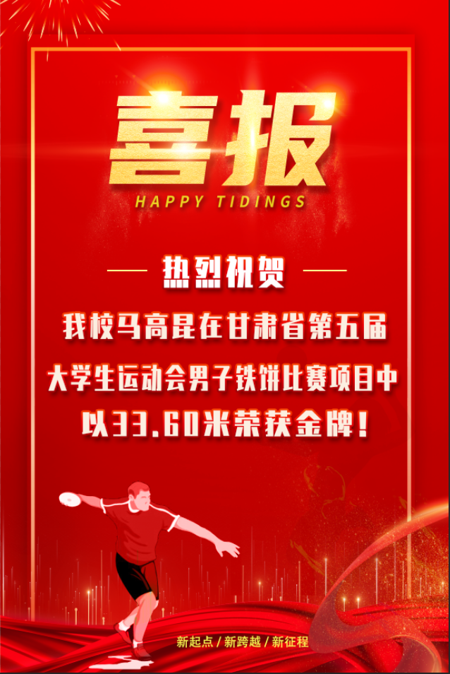 熱烈祝賀我校馬高昆在第五屆全省大學(xué)生運(yùn)動(dòng)會(huì)中獲得鐵餅金牌