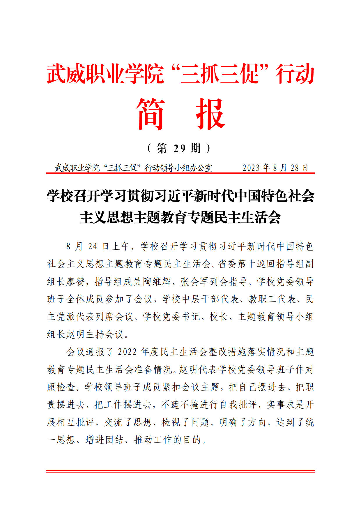 簡報第29期:學校召開學習貫徹習近平新時代中國特色社會主義思想主題教育專題民主生活會