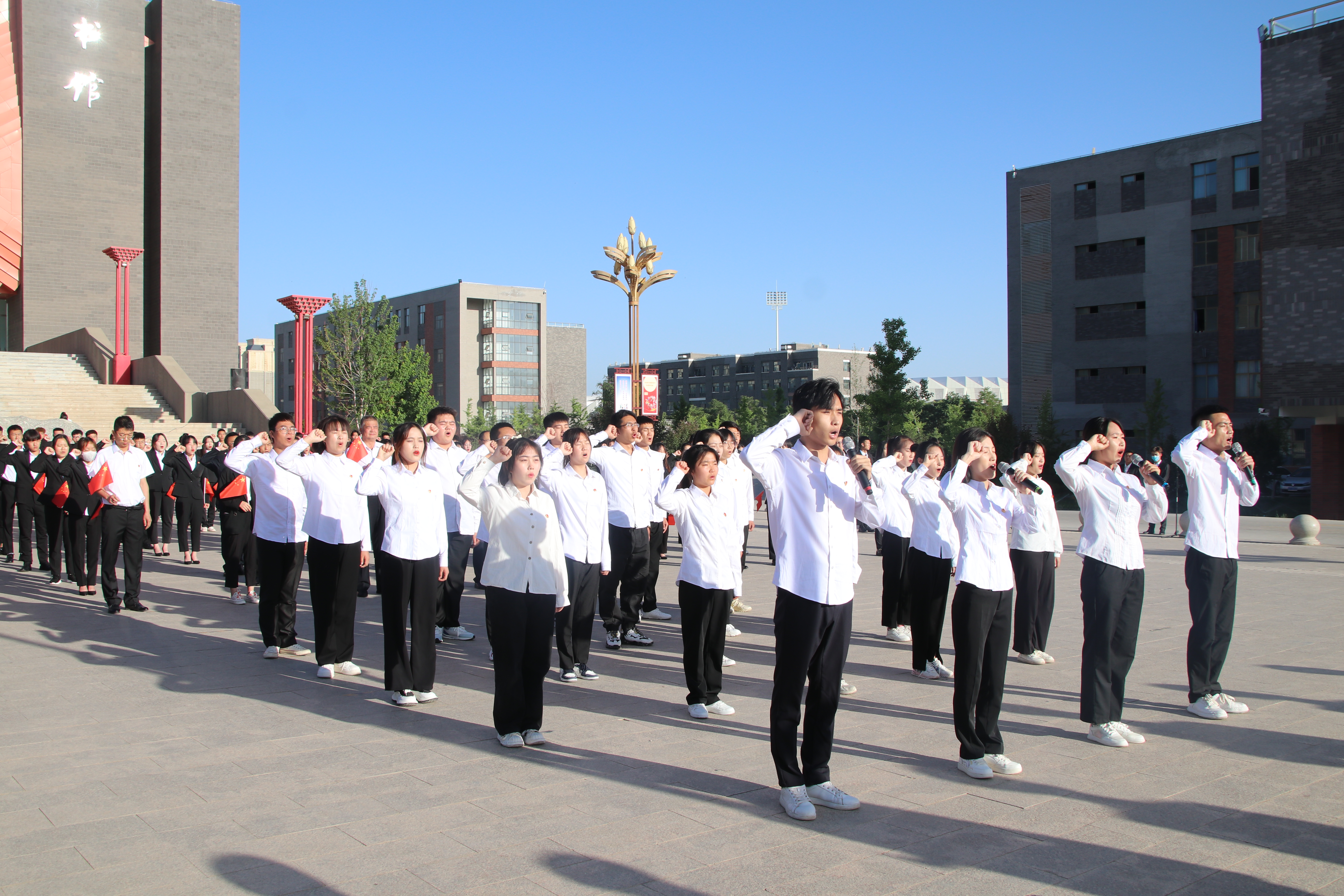 奮斗正當(dāng)時,青春獻(xiàn)給黨!為慶祝中國共產(chǎn)主義青年團(tuán)成立100周年,5月31日早上,校團(tuán)委在圖書館前廣場舉辦“喜迎二十大,永遠(yuǎn)跟黨走,奮進(jìn)新征程”主題團(tuán)日活動。學(xué)校黨委委員、副校長王守云出席活動并講話,活動由校團(tuán)委負(fù)責(zé)人高鵬堂主持。