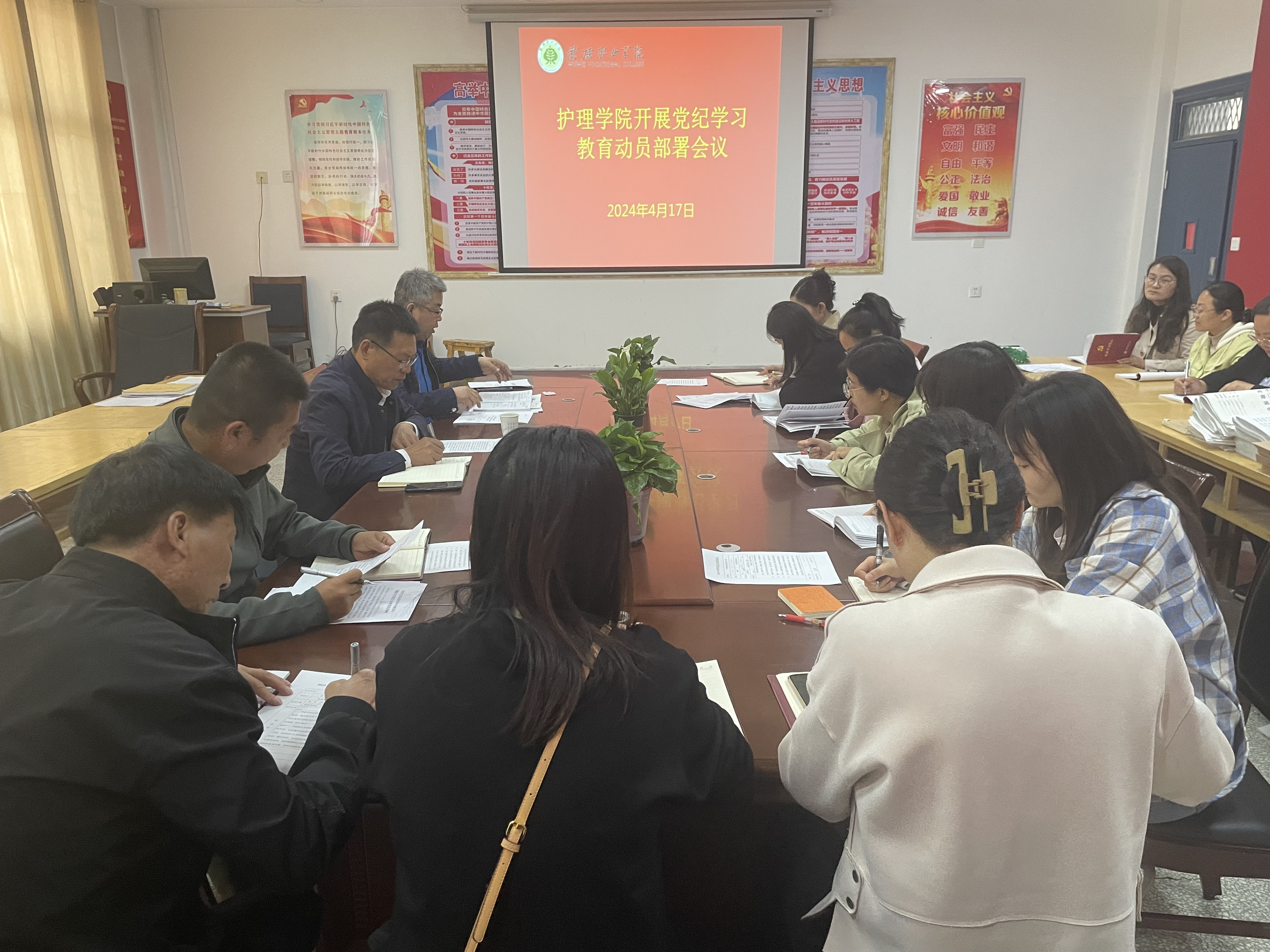 4月17日,護理學院召開黨紀學習教育動員部署會議,傳達學習學校開展黨紀學習教育動員部署會議精神,安排部署護理學院黨紀學習教育工作。學校黨委委員、副校長王永緒出席并作動員講話,會議由黨總支書記張建輝主持。