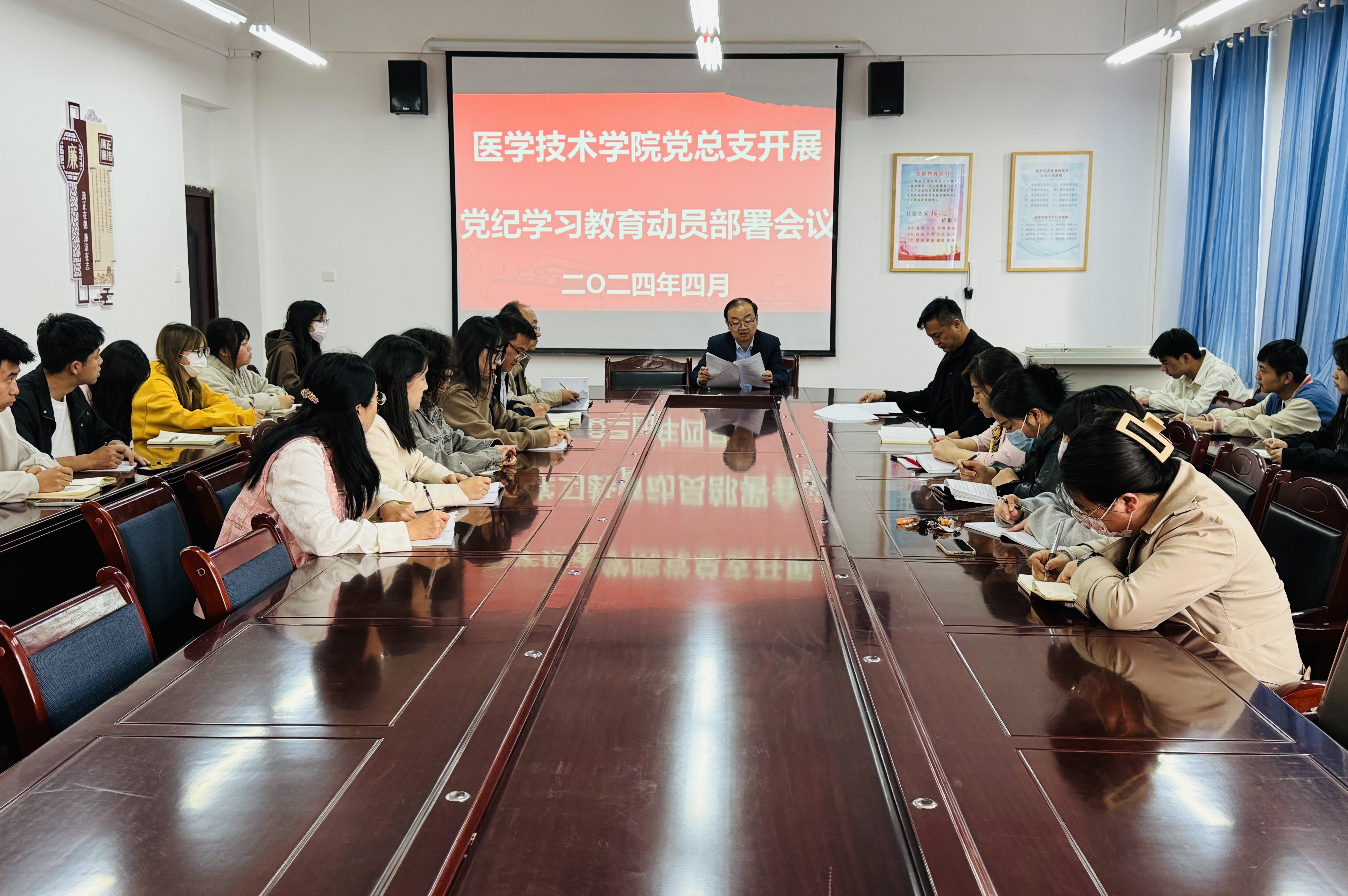 4月22日,我院黨總支召開黨紀學習教育動員部署會議。醫(yī)學技術學院全體黨員參加會議,會議由院黨總支書記黃文源主持。