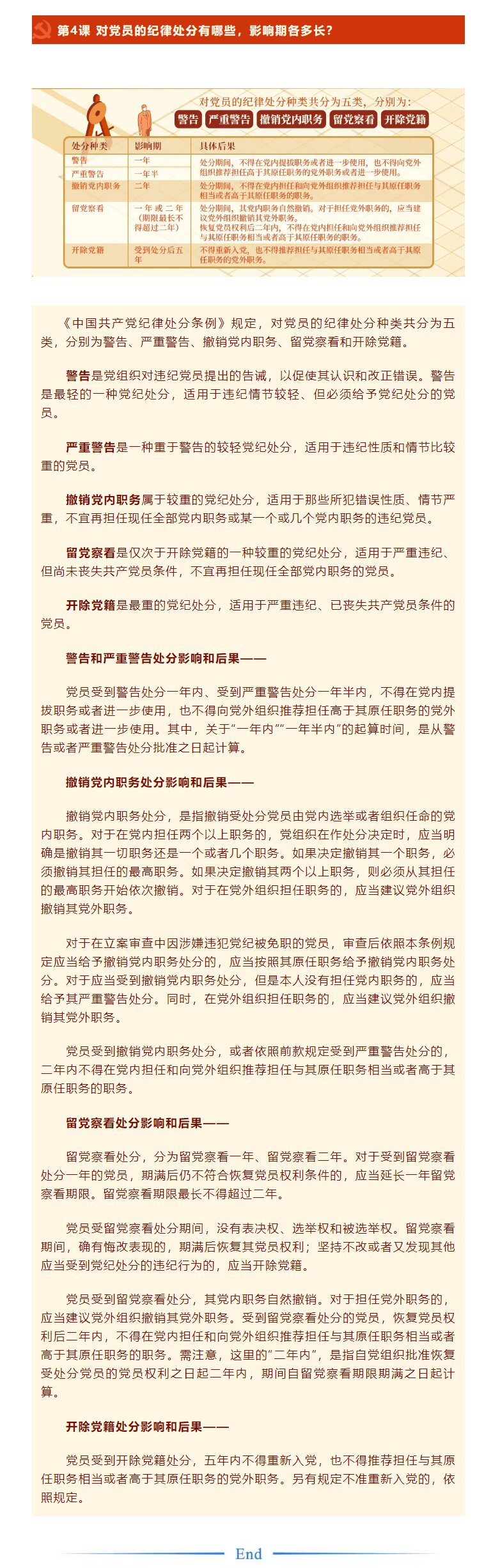 第4課 | 對黨員的紀(jì)律處分有哪些,影響期各多長?