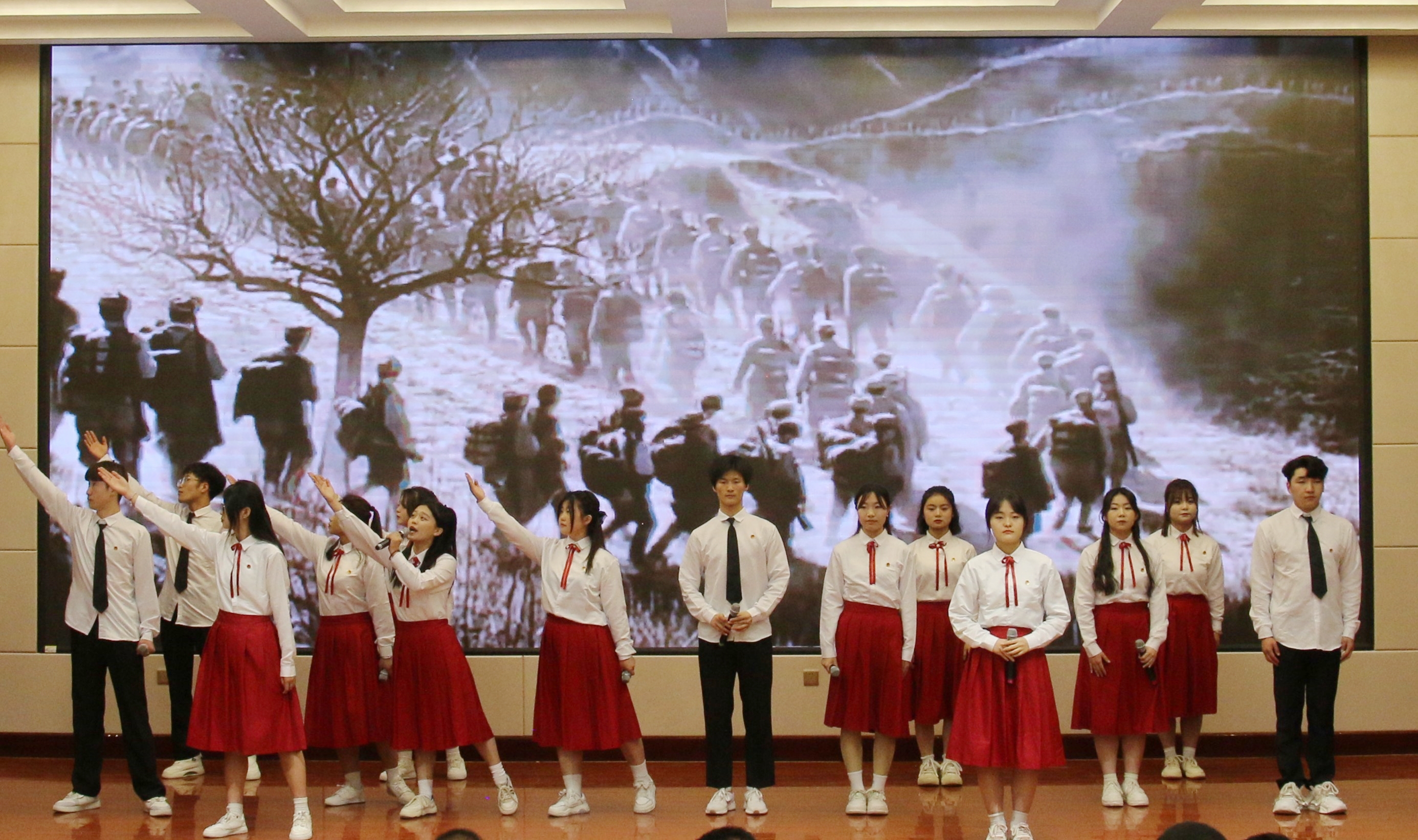 誦讀之聲不絕于耳,誦出青年學子對新時代的期許;強國之音擲地有聲,頌出青年學子的使命感與責任感。相信武職學子必將以青春熱忱予拼搏以力量,以家國情懷賦前進以方向,永葆青春底色,以最昂揚的姿態(tài)為祖國獻禮,以奮斗之我、追夢之我,全力為學校高質(zhì)量發(fā)展注入青春動能,在中國式現(xiàn)代化建設中挺膺擔當!