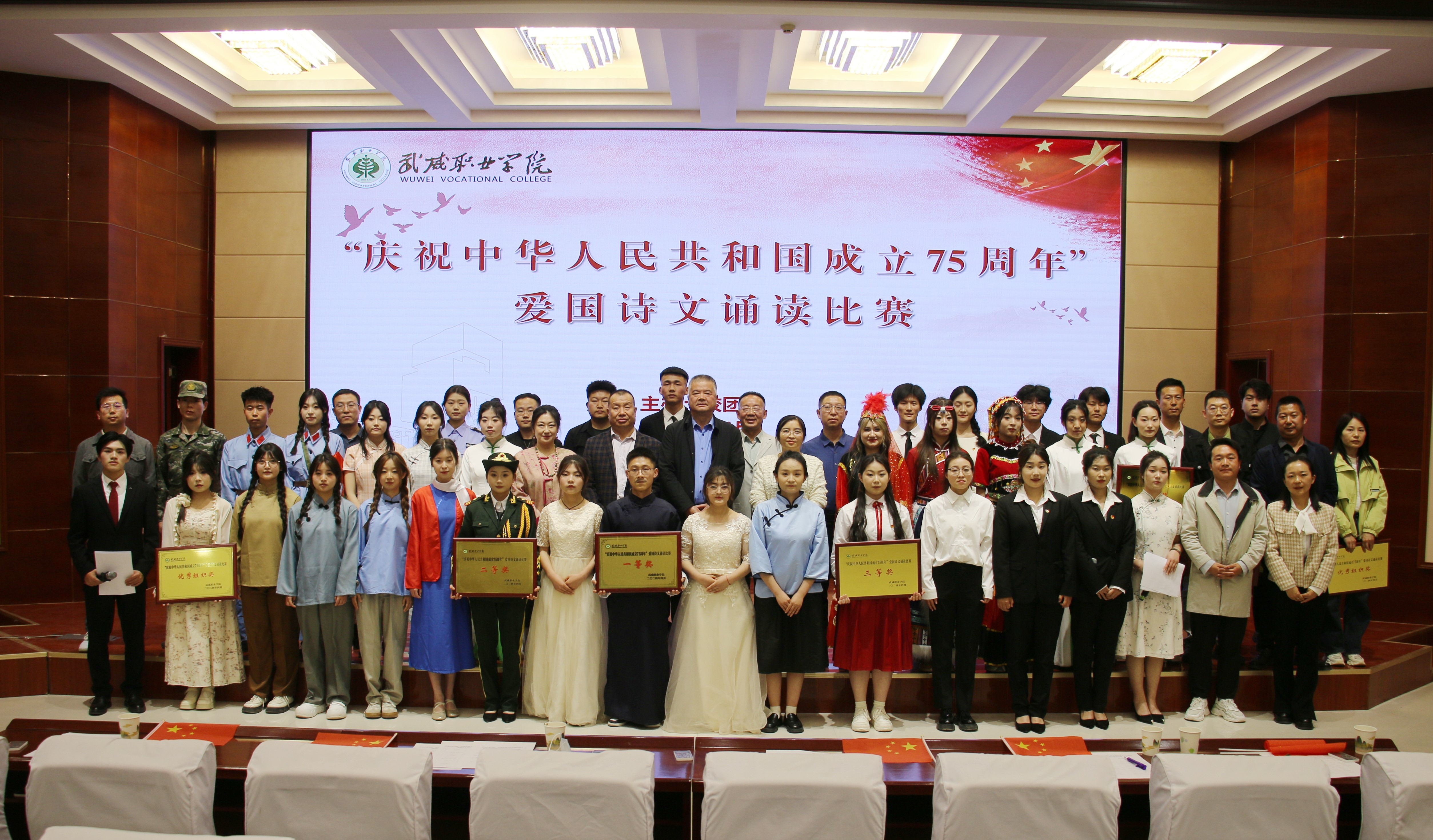 4月25日晚,學校“紀念‘五四’運動105周年暨慶祝新中國成立75周年”愛國詩文誦讀比賽在菁英廳舉辦。黨委委員、副校長王守云出席活動,各二級學院團委書記及學生代表220余人觀看比賽。