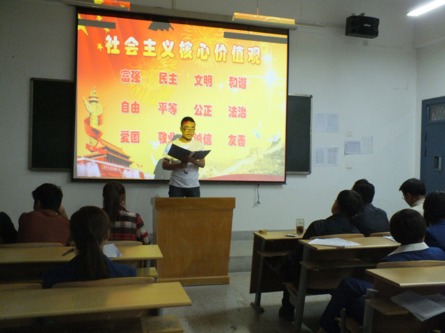 為深入學(xué)習(xí)貫徹黨的十八大精神和習(xí)近平總書(shū)記系列講話中關(guān)于大力推進(jìn)社會(huì)主義核心價(jià)值體系建設(shè)的要求,積極響應(yīng)院團(tuán)委的號(hào)召,我系于4月14日組織師生在4號(hào)教學(xué)樓313教室開(kāi)展了“社會(huì)主義核心價(jià)值觀引領(lǐng)我成長(zhǎng)”主題演講比賽。