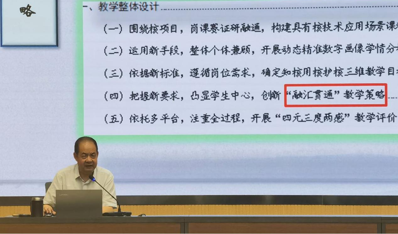 翟存祥以“獲獎(jiǎng)作品是如何打磨的——以2023年核技術(shù)應(yīng)用作品為例”為題,對(duì)標(biāo)國(guó)家教學(xué)能力大賽標(biāo)準(zhǔn),總結(jié)參賽經(jīng)驗(yàn),對(duì)比賽中教學(xué)團(tuán)隊(duì)的組建、參賽項(xiàng)目的選題、人才培養(yǎng)方案的完善、課程標(biāo)準(zhǔn)的制訂、教學(xué)實(shí)施方案和教案撰寫、課堂實(shí)錄視頻的拍攝以及賽場(chǎng)答辯的準(zhǔn)備做了深入細(xì)致的分析。