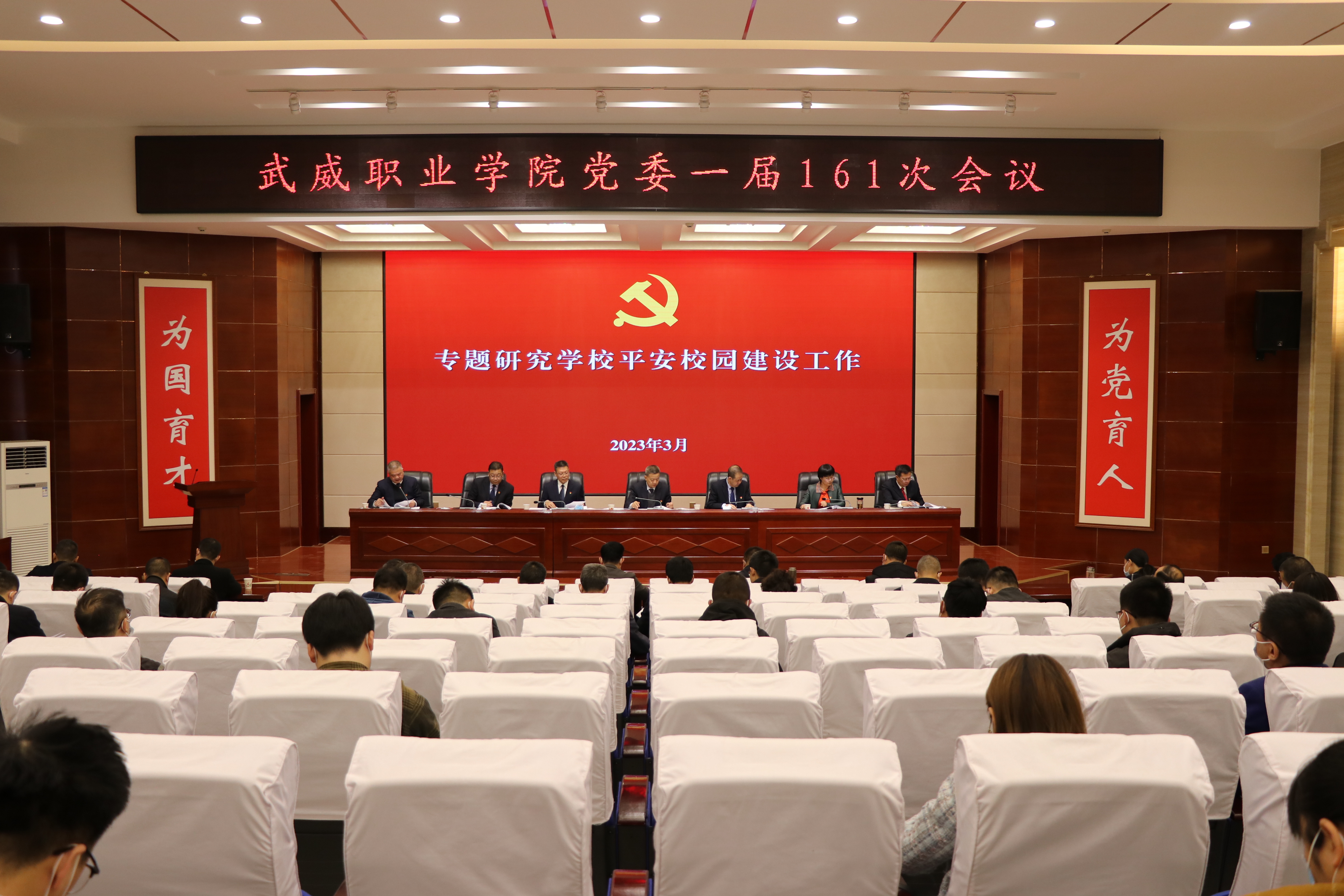 會(huì)議聽取了關(guān)于《武威職業(yè)學(xué)院2023年平安校園建設(shè)工作安排》的匯報(bào),審議通過(guò)了《武威職業(yè)學(xué)院2023年平安校園建設(shè)工作目標(biāo)責(zé)任書》。
