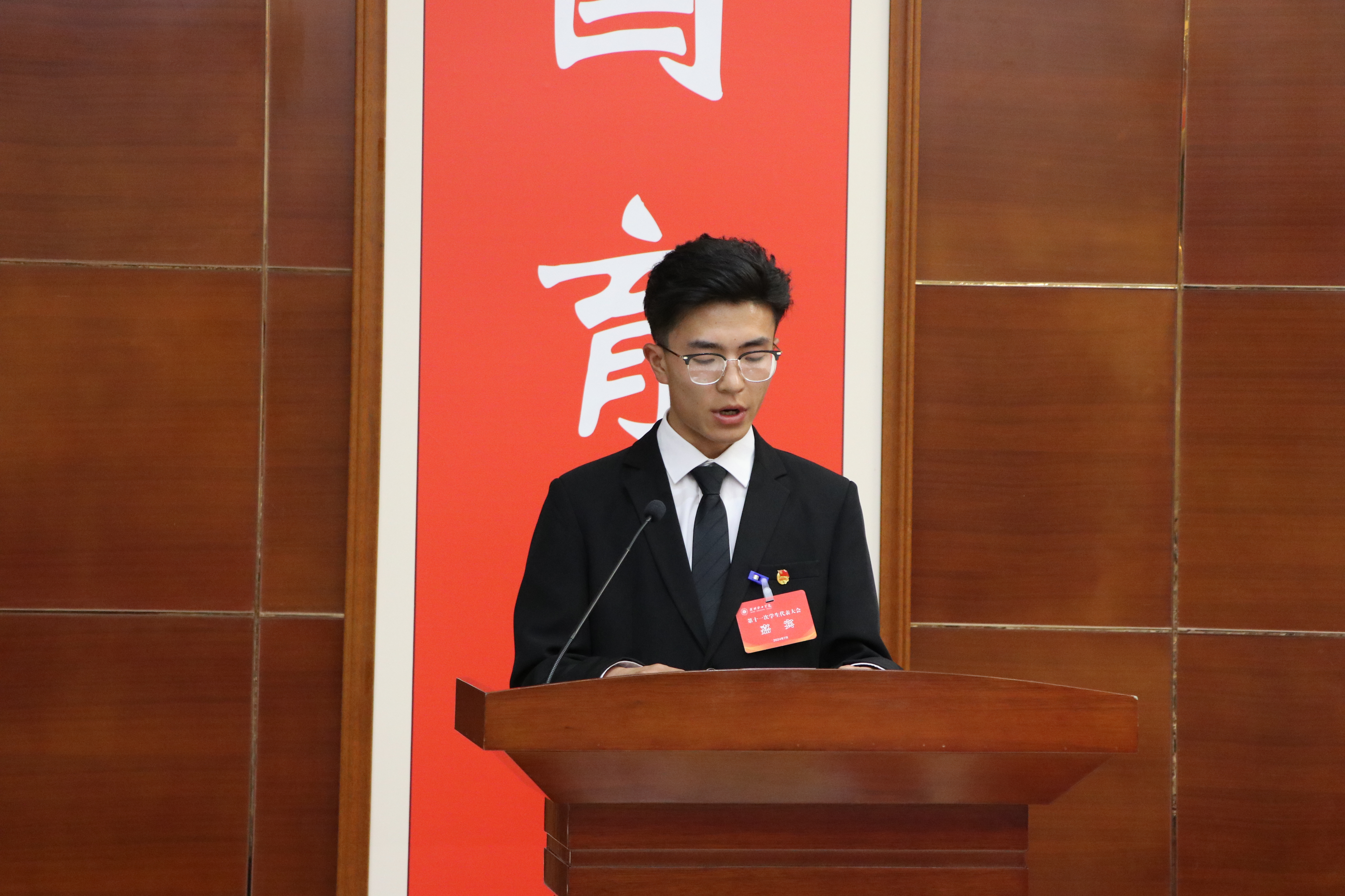學(xué)校學(xué)生會(huì)主席團(tuán)成員虎梁才同學(xué)代表第十屆學(xué)生會(huì)委員會(huì)向大會(huì)作題為《激揚(yáng)青春奏華章,挺膺時(shí)代勇?lián)?dāng),團(tuán)結(jié)帶領(lǐng)廣大同學(xué)在矢志奮斗中書寫時(shí)代華章》的工作報(bào)告。
