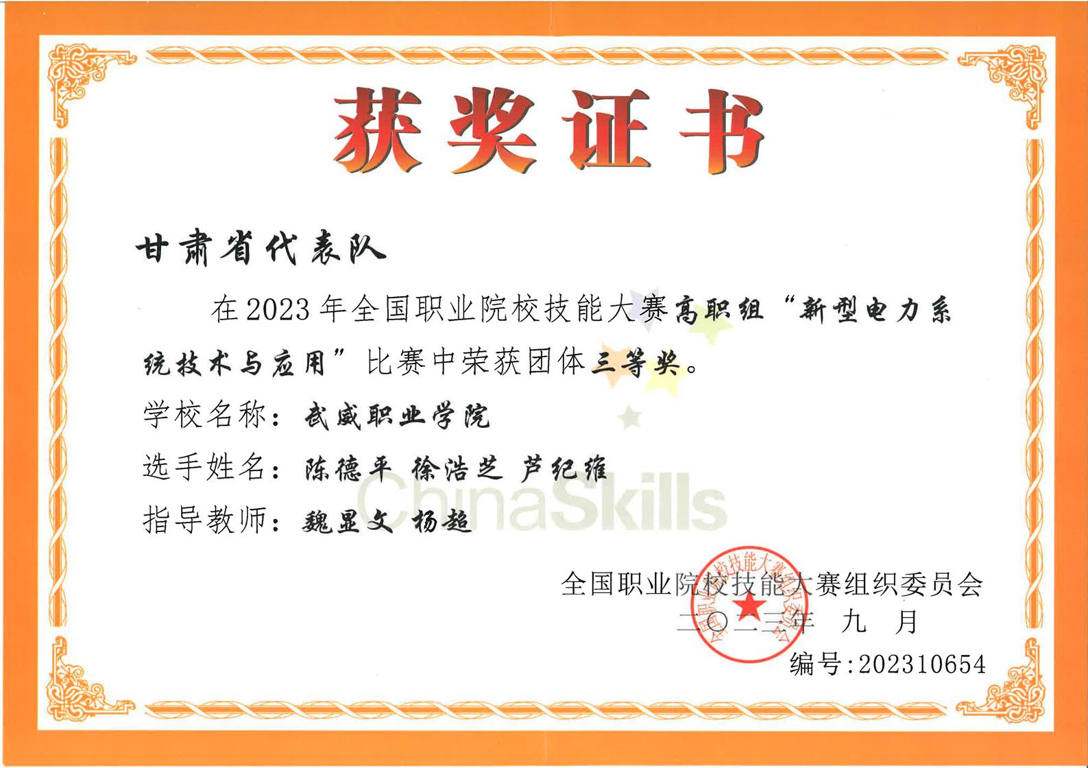 2023年全國職業(yè)院校技能大賽新型電力系統(tǒng)技術(shù)與應(yīng)用賽項三等獎