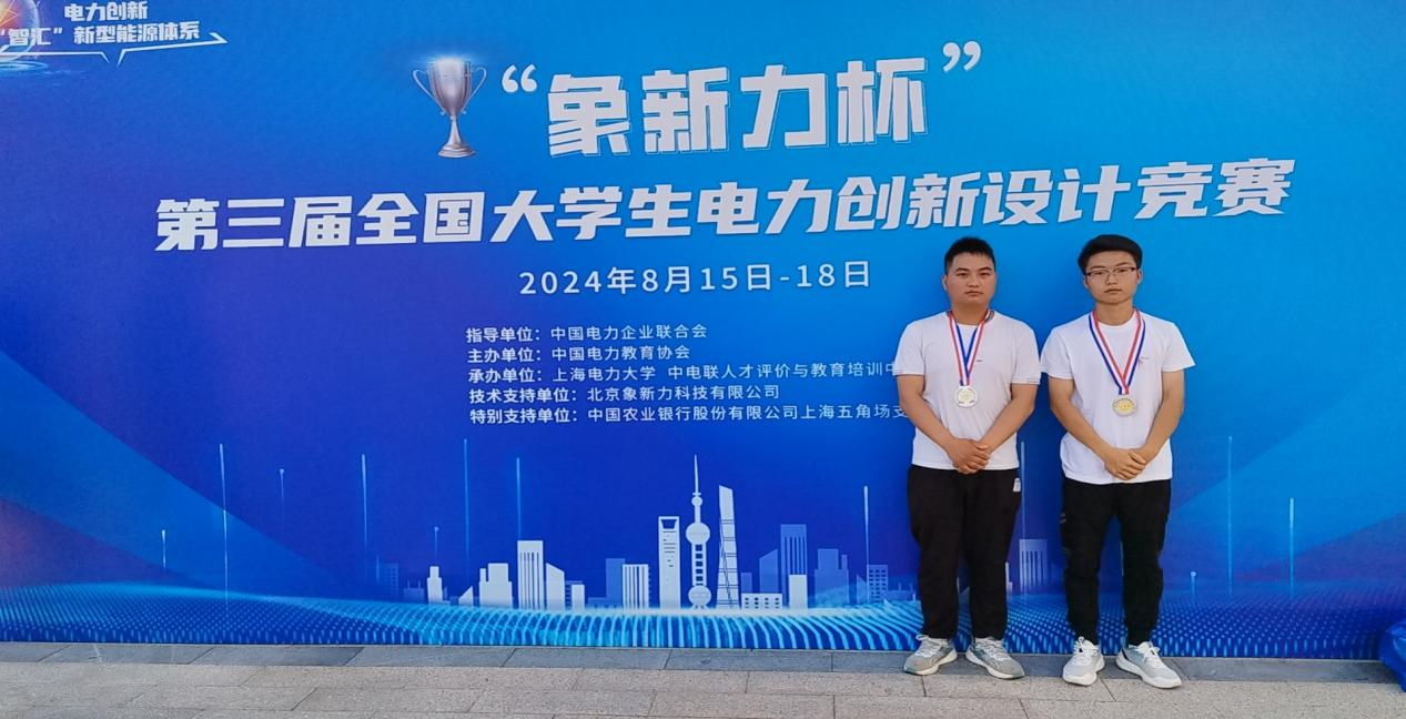 8月15-18日,“象新力杯”第三屆全國大學生電力創(chuàng)新設計競賽總決賽在上海電力大學(臨港校區(qū))圓滿舉行。來自全國114所高校的289支團隊共計1500余人共同參與,經(jīng)過線上線下,匯聚智慧、碰撞創(chuàng)意、交流成果、比拼才能,我校工程技術(shù)學院參賽的2名同學獲決賽二等獎。