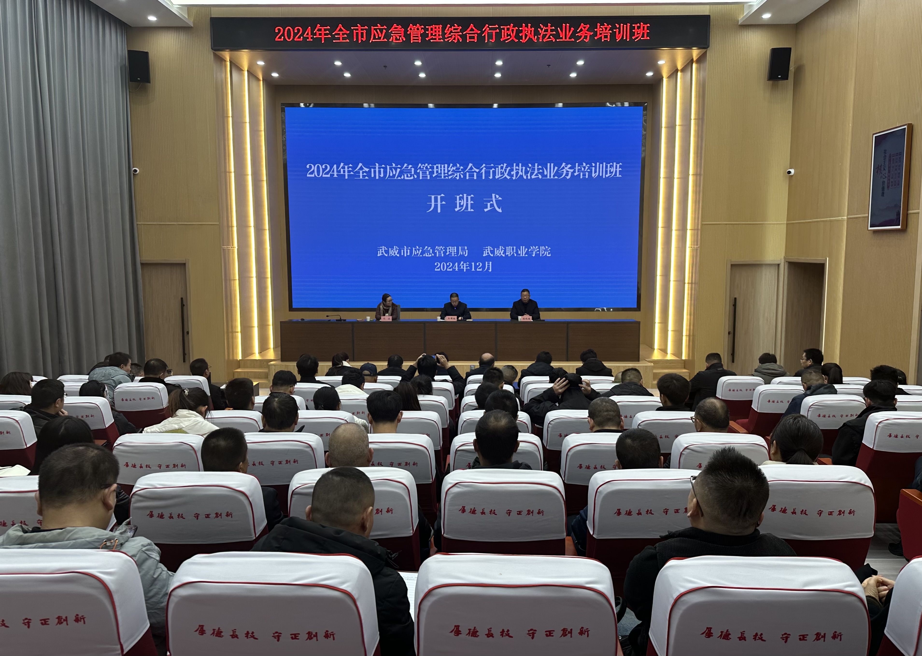2024 年 12 月 3 日,由武威市應(yīng)急管理局主辦,我校承辦的“2024 年武威市應(yīng)急管理綜合行政執(zhí)法業(yè)務(wù)培訓(xùn)班暨安全監(jiān)管執(zhí)法競(jìng)賽比武”正式開班。武威市應(yīng)急管理局黨組成員、副局長(zhǎng)王國(guó)棟,學(xué)校黨委委員、紀(jì)委書記陳曉煜出席開班式。