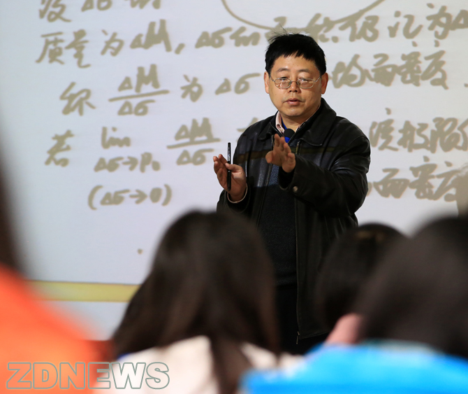 現(xiàn)在,蘇德礦上課用兩個話筒,一個掛在脖子上,一個放在講臺上,無論學(xué)生坐在哪個角落,都能聽得清楚。他還像一個“舞臺監(jiān)督”一樣嚴(yán)格布置環(huán)境:教室第一排的窗簾必須拉上,以免大屏幕反光;幻燈片的紙片要用油性筆書寫,這樣投影到屏幕上的效果最清晰。——這樣的布局,就是能為學(xué)生能穩(wěn)定他們的注意力設(shè)計的,特別是,當(dāng)他們感覺“犯難”時,蘇德礦能適時拋上一個“段子”,把學(xué)生分散的注意力拉回來: “當(dāng)你喜歡一個人,他的一點(diǎn)變化你都看在眼里,別人都變成了常數(shù),TA才是唯一變量。” 這是在講解偏導(dǎo)函數(shù);他還用“存錢存銀行還是存余額寶”來解釋函數(shù)里的重要極限概念。在講一元復(fù)合函數(shù)求導(dǎo)的時候,他用來解釋的例子是:“就像最近來天氣突然熱起來,你要脫衣服。脫到怎樣合適呢?一件一件脫,到不熱了為止。復(fù)合函數(shù)也一樣,一層一層求導(dǎo),直到內(nèi)函數(shù)的導(dǎo)數(shù)有公式,就成了。”又比如,說“開車為什么會撞樹?因為朝著大樹的方向,再一個,就是車速太快。”蘇德礦先賣個了關(guān)子,接著把方向?qū)?shù)亮出來,“在P點(diǎn)沿L方向的函數(shù)值的變化率,跟撞樹一樣,一個是方向,一個是速度。”