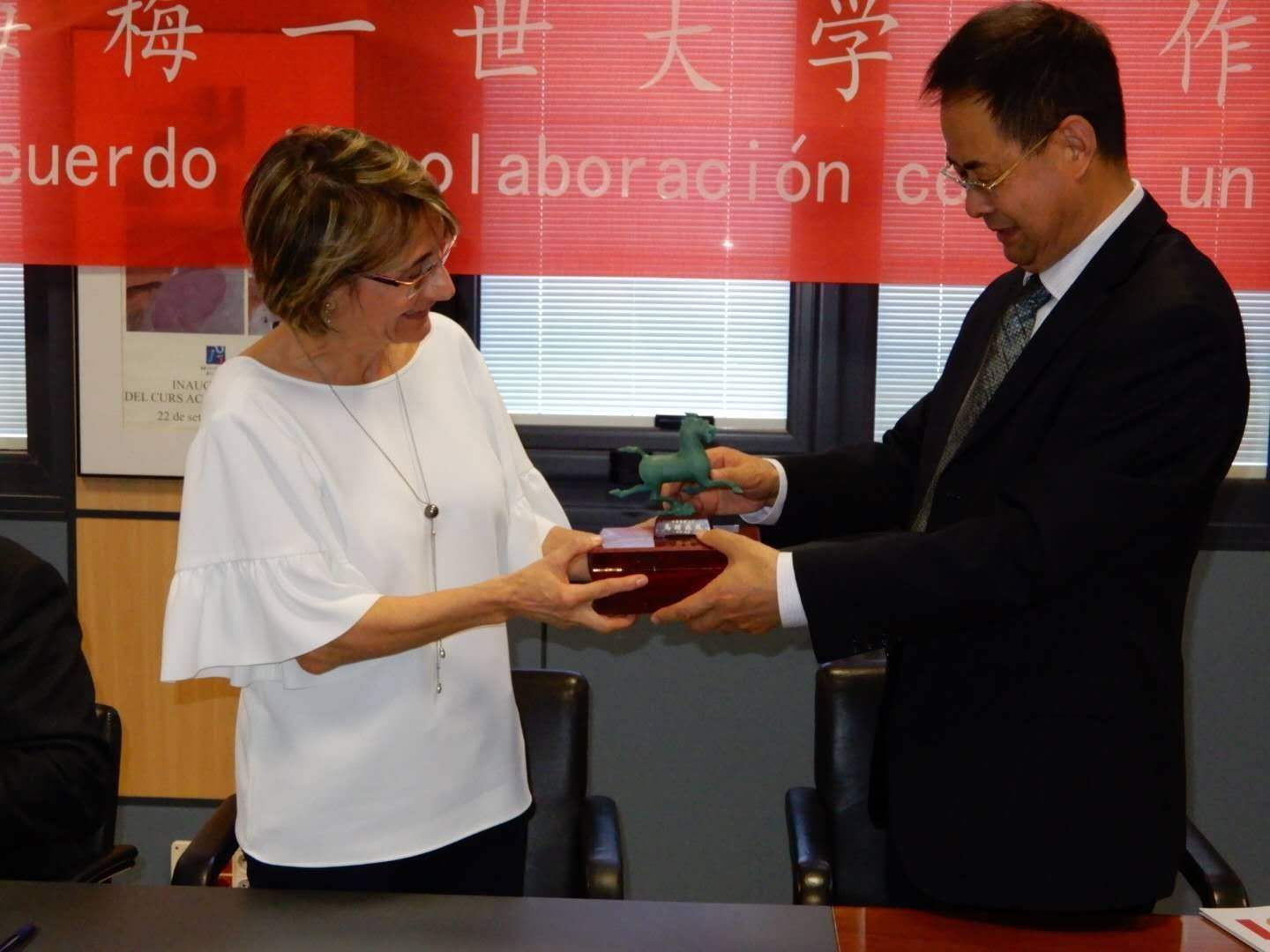 -- Zhai Cunxiang, vice Secretary of the Committee of Wuwei Vocational College of the CPC visited Universitat Jaume I and gave presents to Universitat Jaume I on behalf of the College in September, 2018