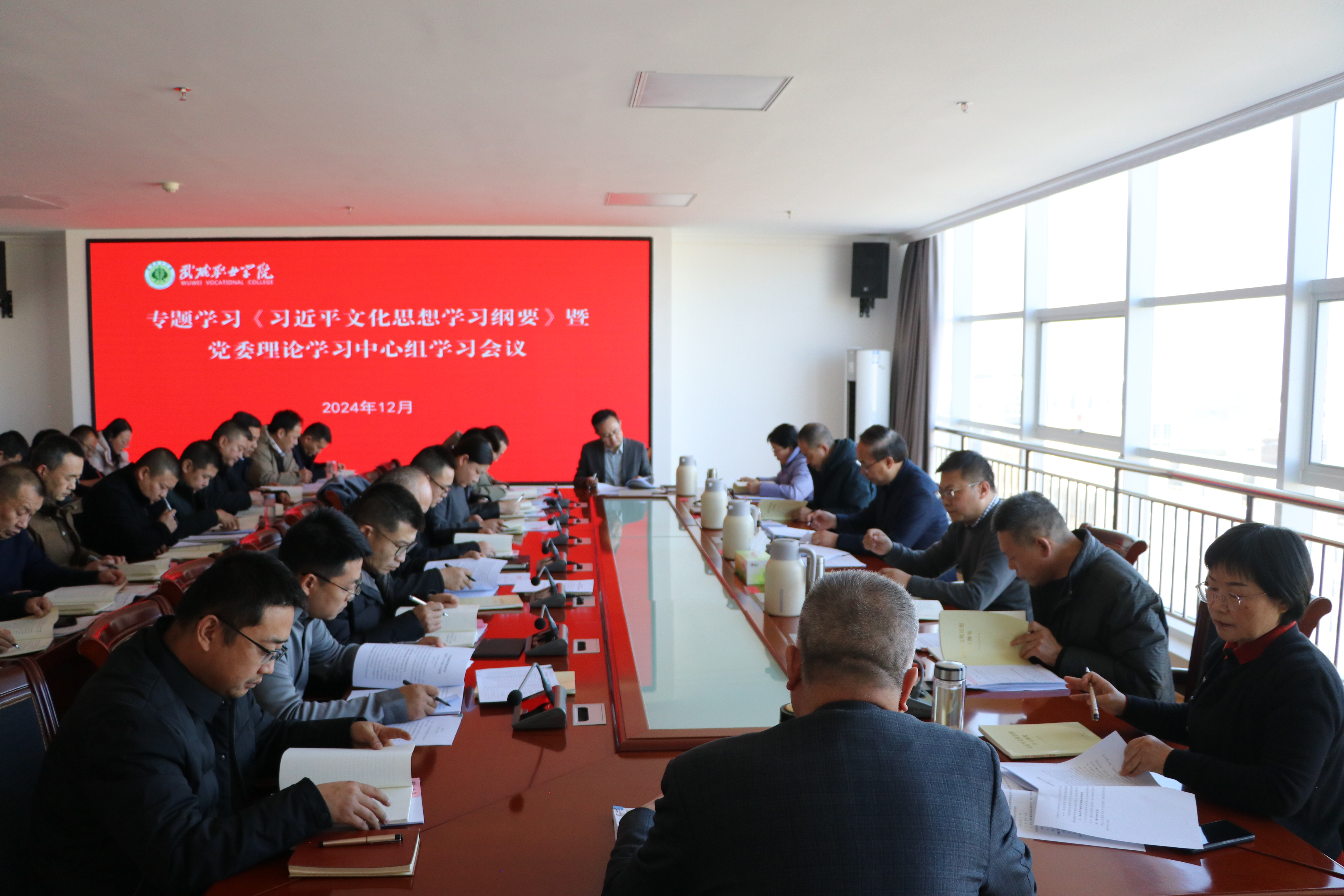 12月20日下午,學(xué)校召開(kāi)《習(xí)近平文化思想學(xué)習(xí)綱要》專(zhuān)題學(xué)習(xí)暨黨委理論學(xué)習(xí)中心組學(xué)習(xí)會(huì)議。學(xué)校領(lǐng)導(dǎo),各部門(mén)、二級(jí)學(xué)院主要負(fù)責(zé)人,各黨總支與直屬黨支部書(shū)記參加會(huì)議。黨委書(shū)記王宏主持會(huì)議并講話(huà)。
