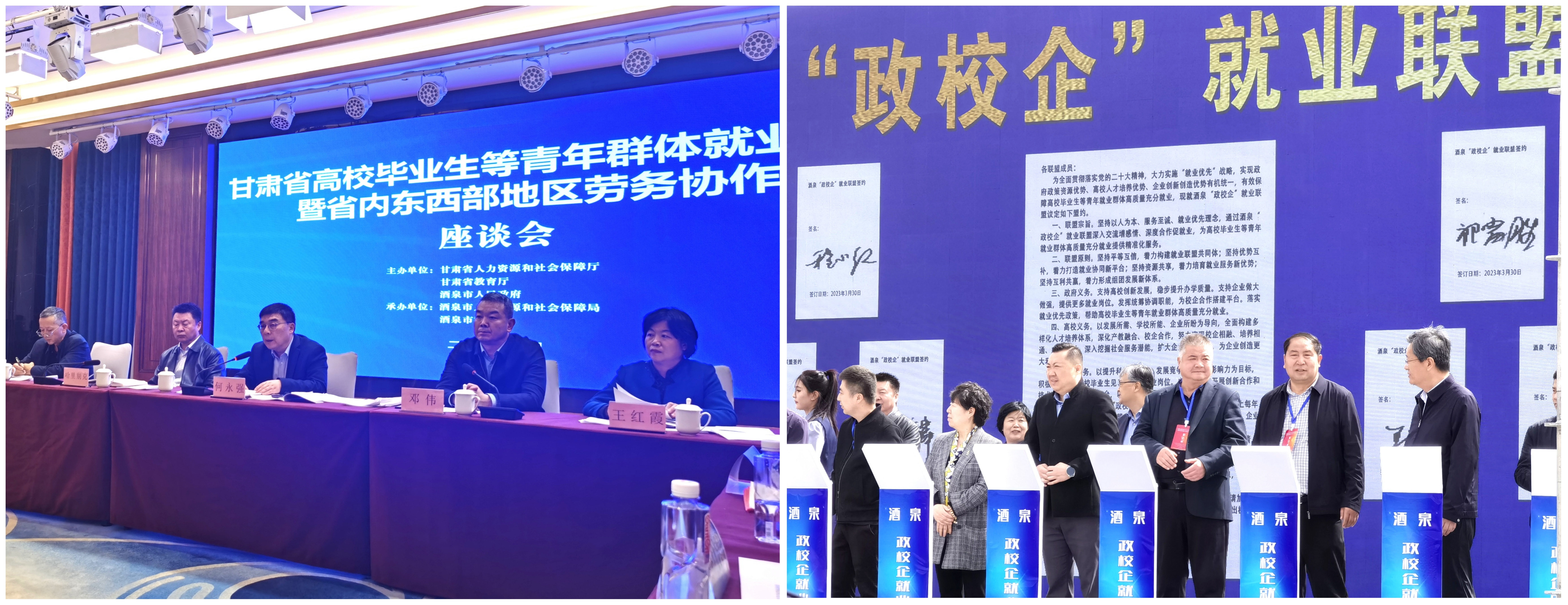 3月30日,王守云帶領(lǐng)招生就業(yè)處、合作教育辦負(fù)責(zé)人董鵬,在酒泉市參加了由甘肅省人社廳、教育廳組織舉辦的“甘肅省高校畢業(yè)生等青年群體就業(yè)暨省內(nèi)東西部地區(qū)勞務(wù)協(xié)作”座談會與招聘會,并進行了政校企就業(yè)聯(lián)盟簽約活動。王守云代表武威職業(yè)學(xué)院在會上做了題為“政校企聯(lián)動深化校企合作,促進畢業(yè)生高質(zhì)量充分就業(yè)”的交流發(fā)言。