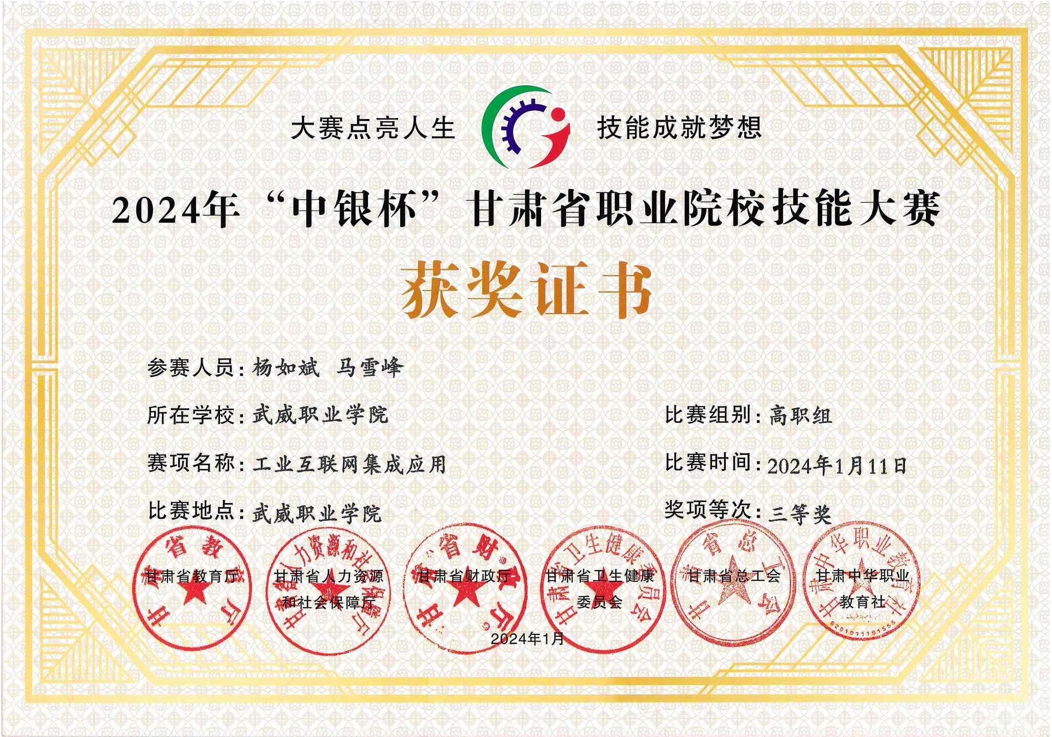 獲2024年“中銀杯”甘肅省職業(yè)院校技能大賽“三等獎(jiǎng)”