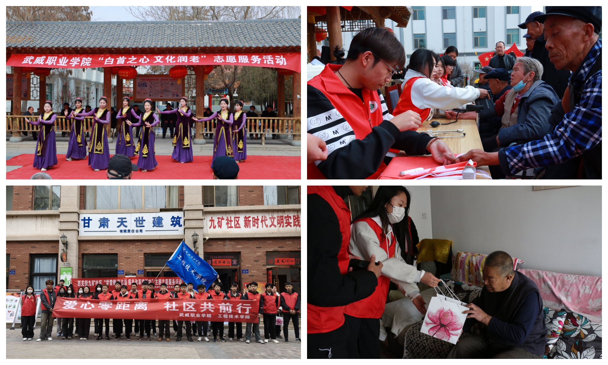 開展愛老敬老志愿服務(wù)活動。3月21日,校團委組織50余名護理和學(xué)前教育專業(yè)志愿者,前往涼州區(qū)中心敬老院開展“白首之心·文化潤老”志愿服務(wù)活動,為老人捐贈生活用品和愛心物資,開展文藝表演慰問演出,為老人測量血壓、血糖,告知在日常生活起居中的注意事項,以專業(yè)技能守護老人健康。3月5日,工程技術(shù)學(xué)院35名志愿者走進西關(guān)街九條嶺礦區(qū)社區(qū),開展“愛心零距離社區(qū)共前行”志愿服務(wù)活動,為社區(qū)孤寡老人、獨居老人和老黨員等特殊家庭送上慰問品,打掃衛(wèi)生、擦拭家具,幫忙照料綠植,并與社區(qū)工作者一起規(guī)范擺放社區(qū)內(nèi)亂停亂放的自行車、電動車,清潔窗戶、地面,營造整潔有序的社區(qū)環(huán)境。