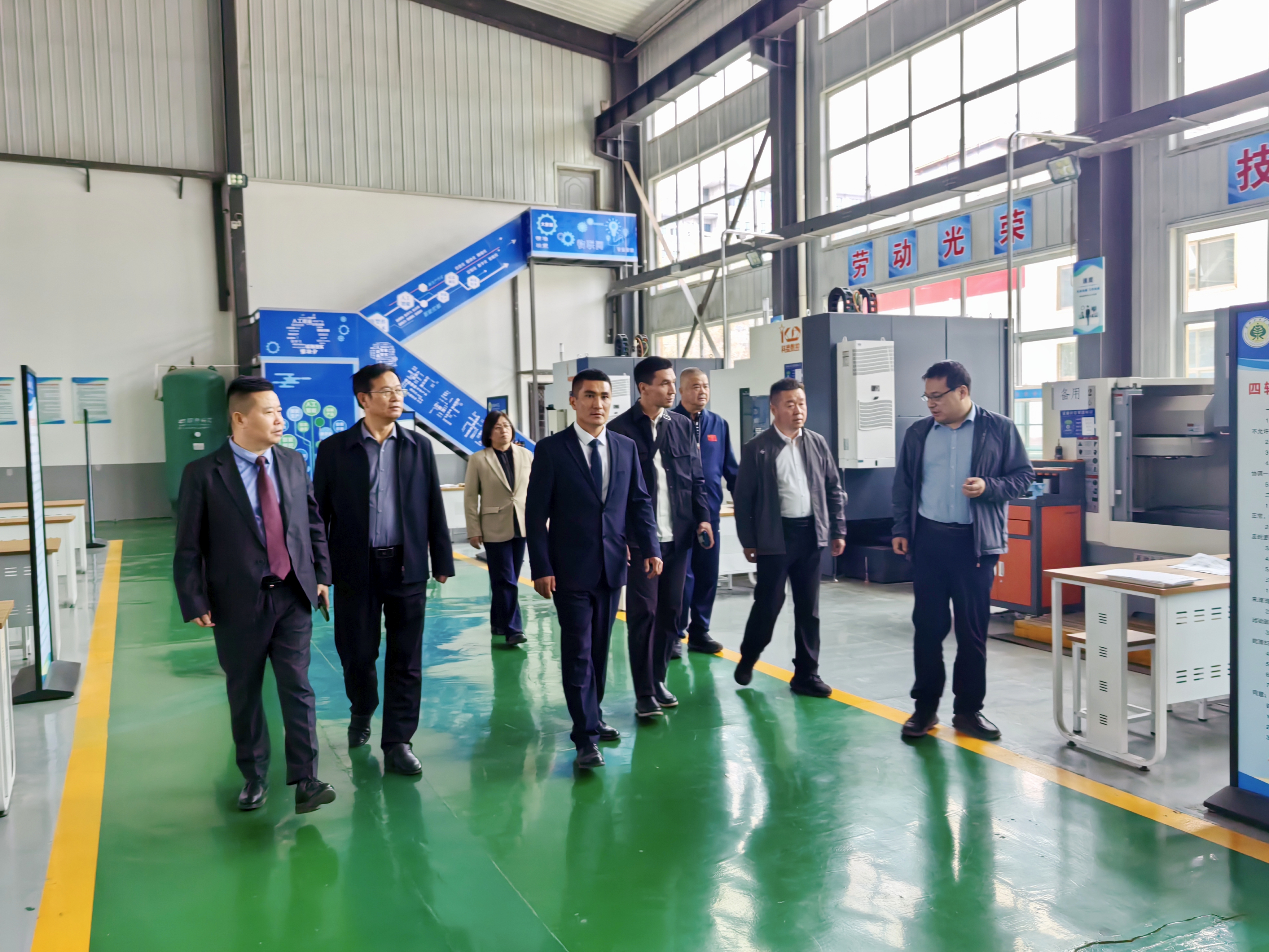 吉爾吉斯斯坦代表一行參觀了我校智能制造實訓基地,張開禮詳細介紹了學校在新能源汽車技術、智能制造等專業(yè)領域的實訓設施和取得的教學成果。