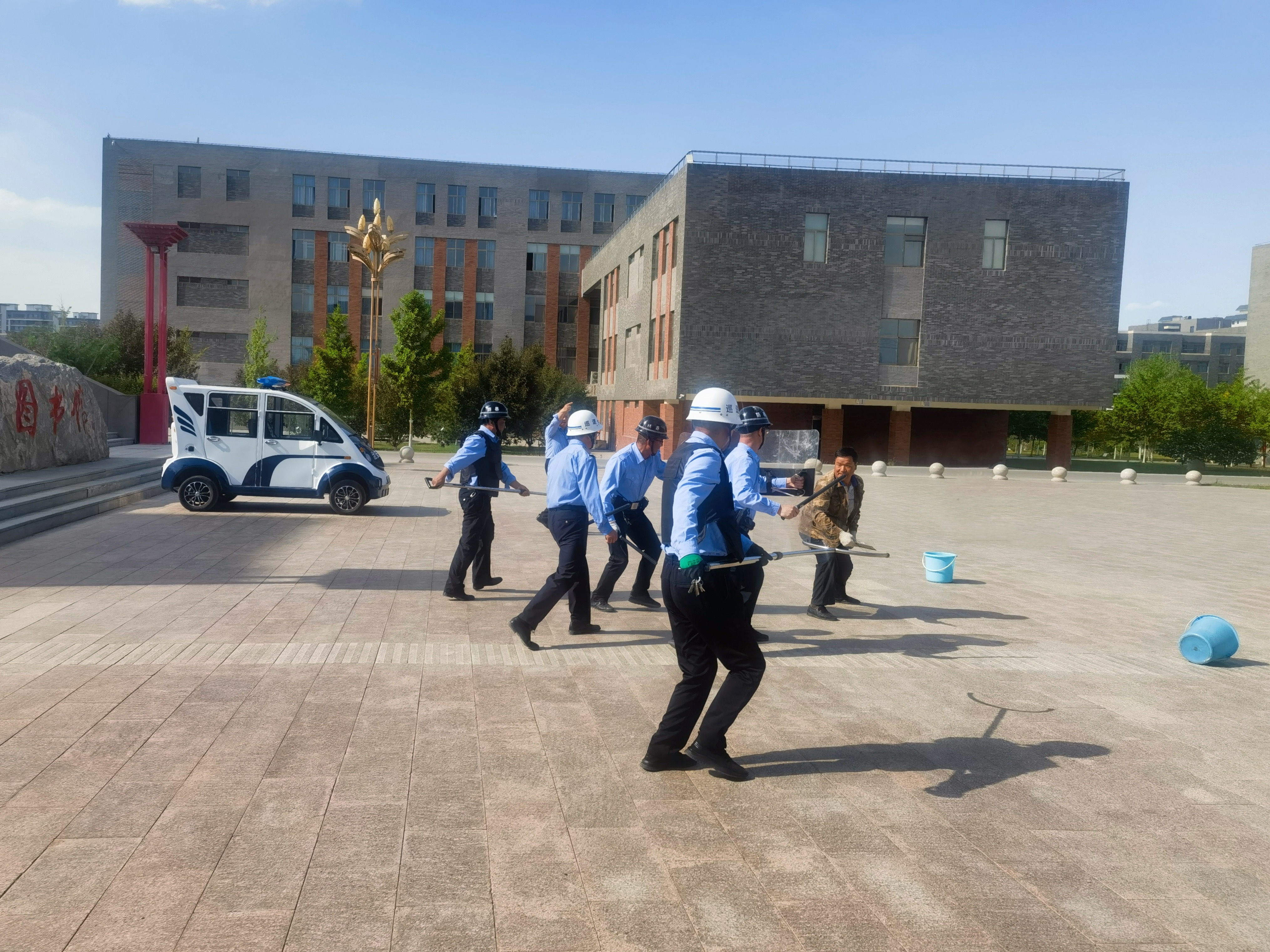 為進一步增強師生反恐防暴意識,提升安保人員應急處置能力,筑牢校園安全防線,5月15日,學校安全保衛(wèi)處聯(lián)合轄區(qū)派出所在圖書館東側廣場組織開展了反恐防暴應急演練。