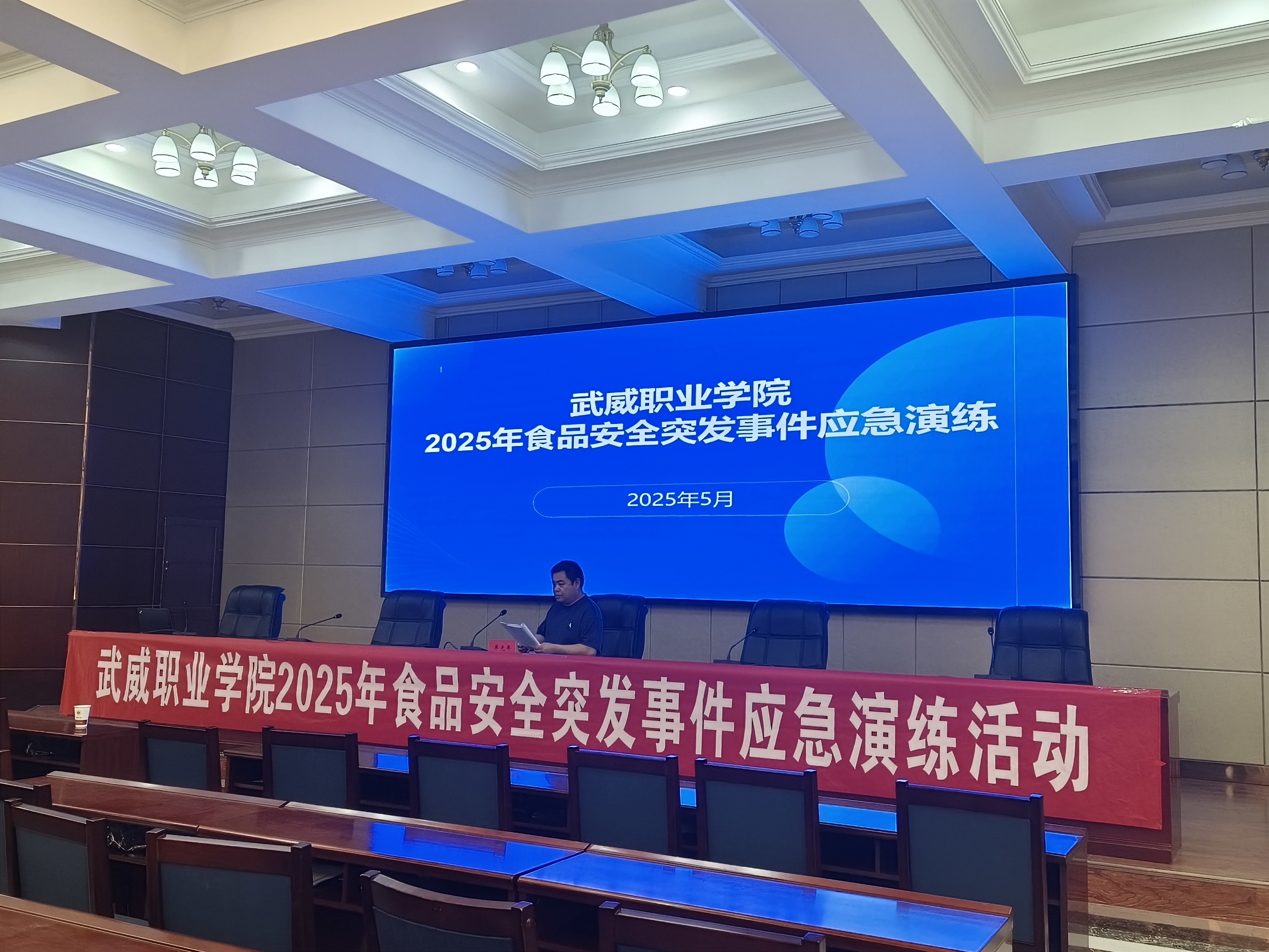 為全面貫徹落實(shí)習(xí)近平總書記關(guān)于食品安全重要指示批示精神和對(duì)食品安全提出的“四個(gè)最嚴(yán)”要求,不斷加強(qiáng)我校食品安全應(yīng)急管理體系建設(shè),著力提高學(xué)校食品安全突發(fā)事件的快速響應(yīng)、高效處置能力,牢固樹立“全程防范、全員應(yīng)急”的理念,學(xué)校于5月21日下午在行樹樓北側(cè)報(bào)告廳舉辦2025年食品安全突發(fā)事件應(yīng)急演練。學(xué)校食品安全總監(jiān)、辦公室、宣傳統(tǒng)戰(zhàn)部、學(xué)生工作部、后勤管理處、校醫(yī)室、各二級(jí)學(xué)院輔導(dǎo)員代表和學(xué)生食堂、超市、后勤服務(wù)樓全體從業(yè)人員200余人參加演練。