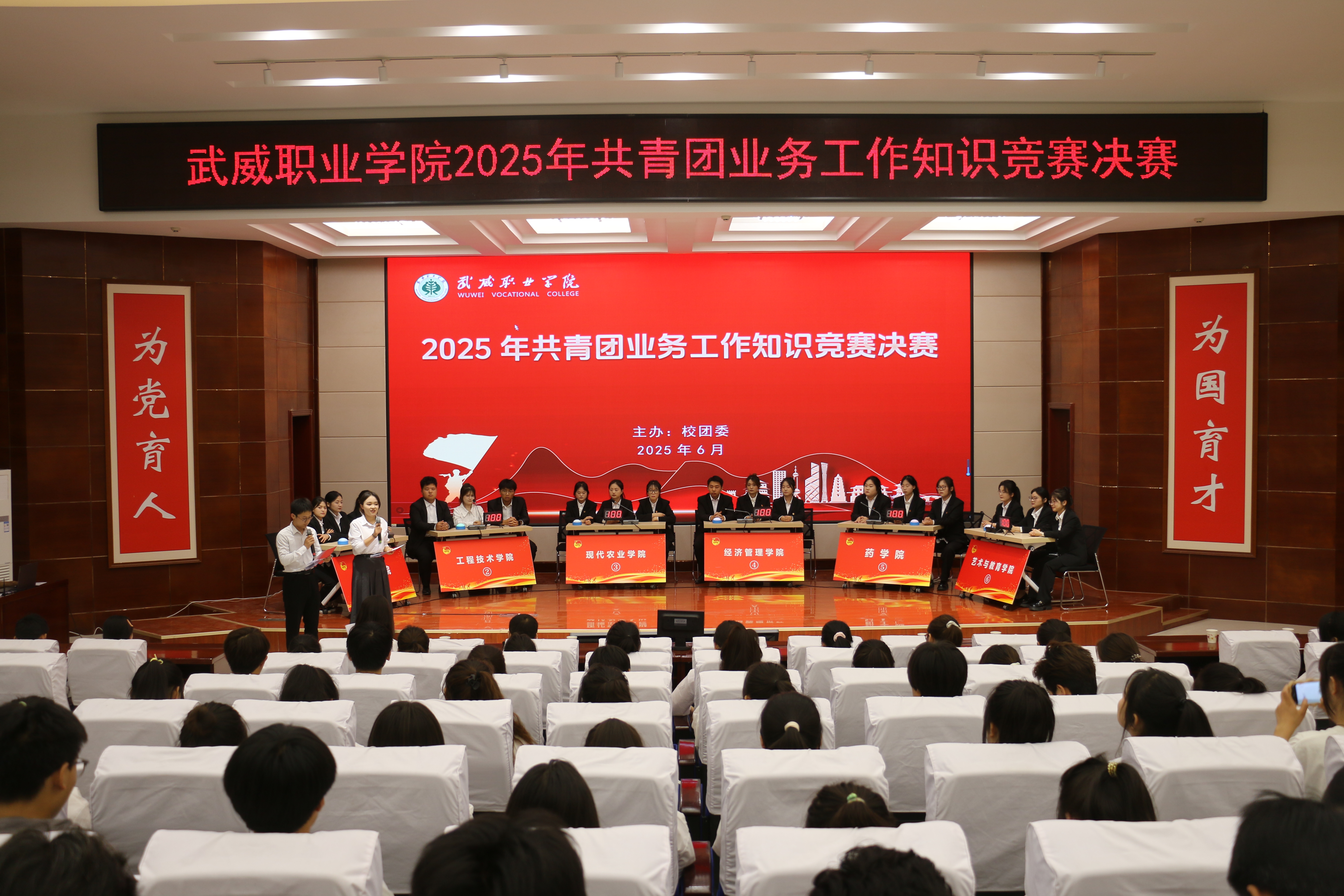 為進(jìn)一步提升基層團(tuán)干部業(yè)務(wù)知識(shí)水平,增強(qiáng)廣大團(tuán)員青年歷史使命感與責(zé)任感。6月13日,校團(tuán)委在菁英廳舉辦共青團(tuán)業(yè)務(wù)知識(shí)競(jìng)賽決賽,二級(jí)學(xué)院團(tuán)委書(shū)記及團(tuán)員代表200余人觀看比賽。